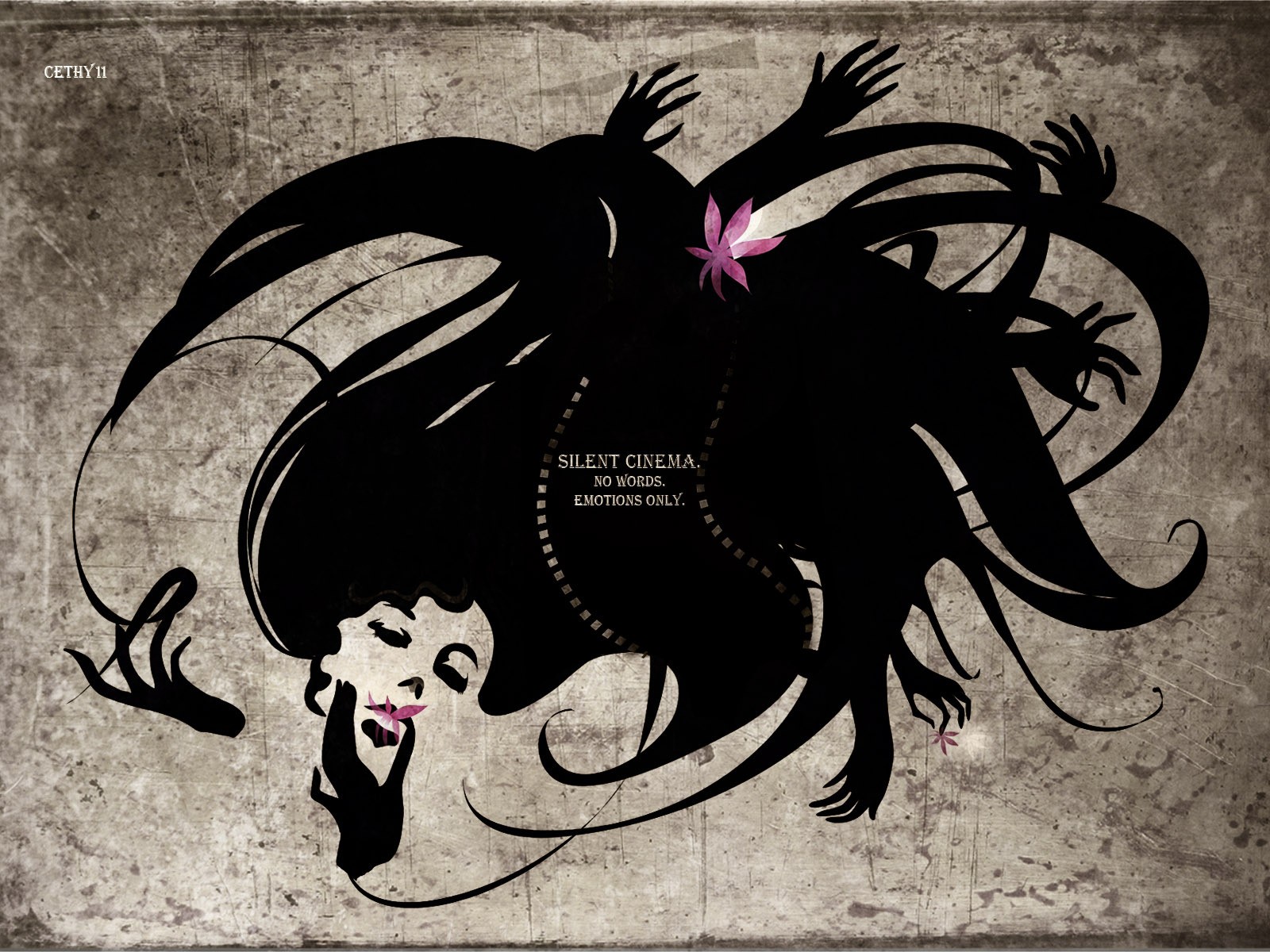 Tattoo of a girl with hands made of hair - desktop wallpapers