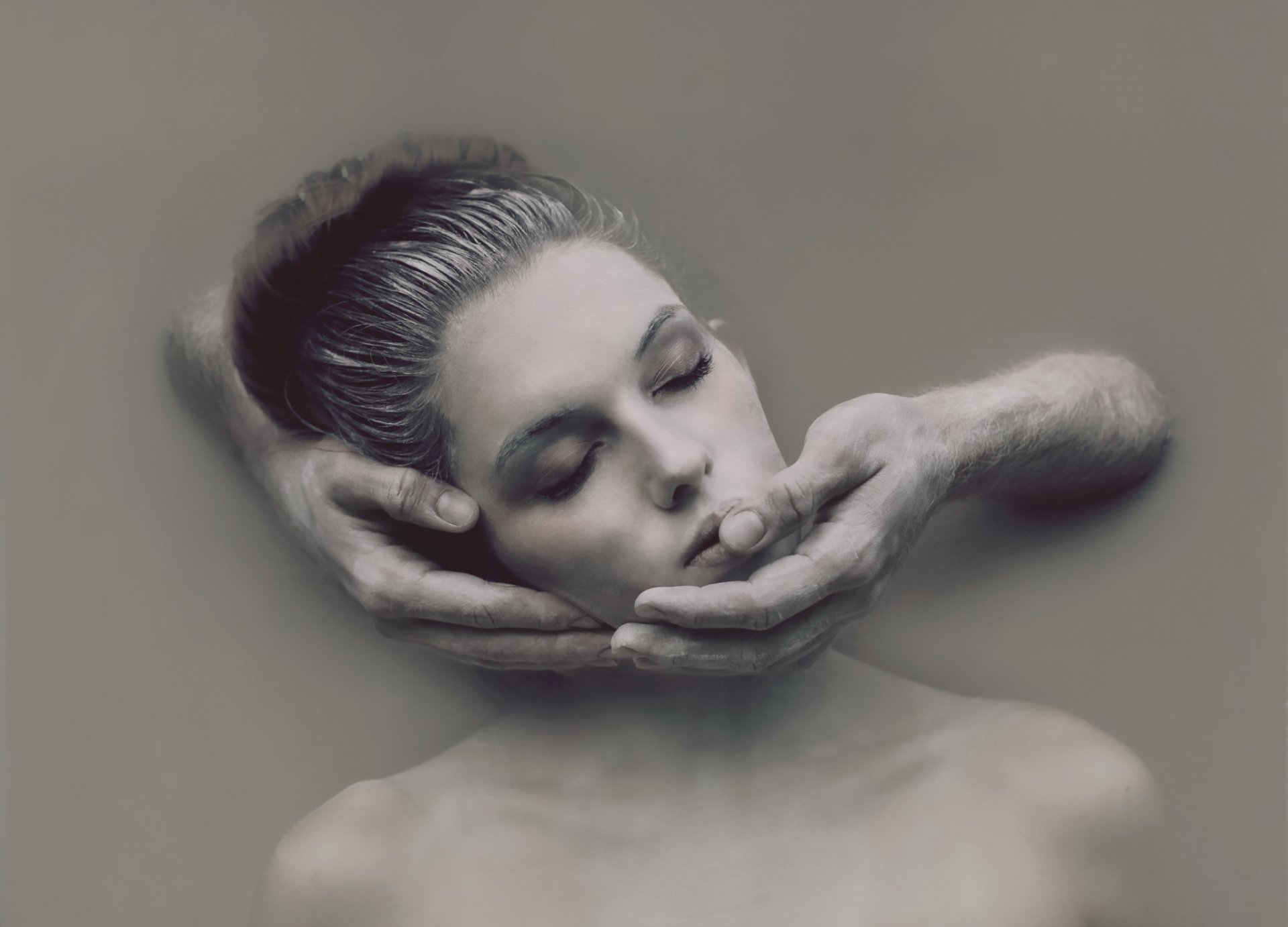 A man supports a woman by the head - wallpapers for your phone