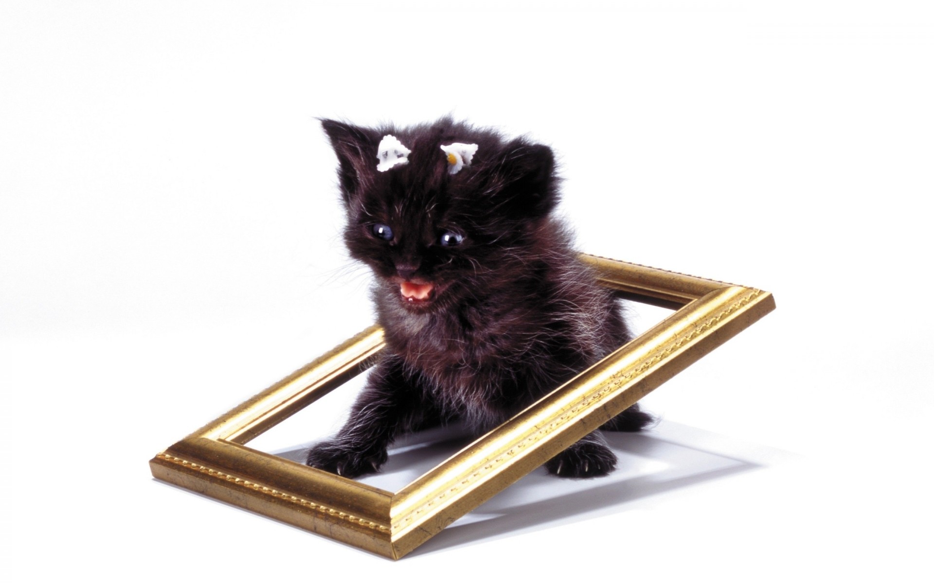 The kitten screams in fright while sitting in the frame - desktop wallpapers