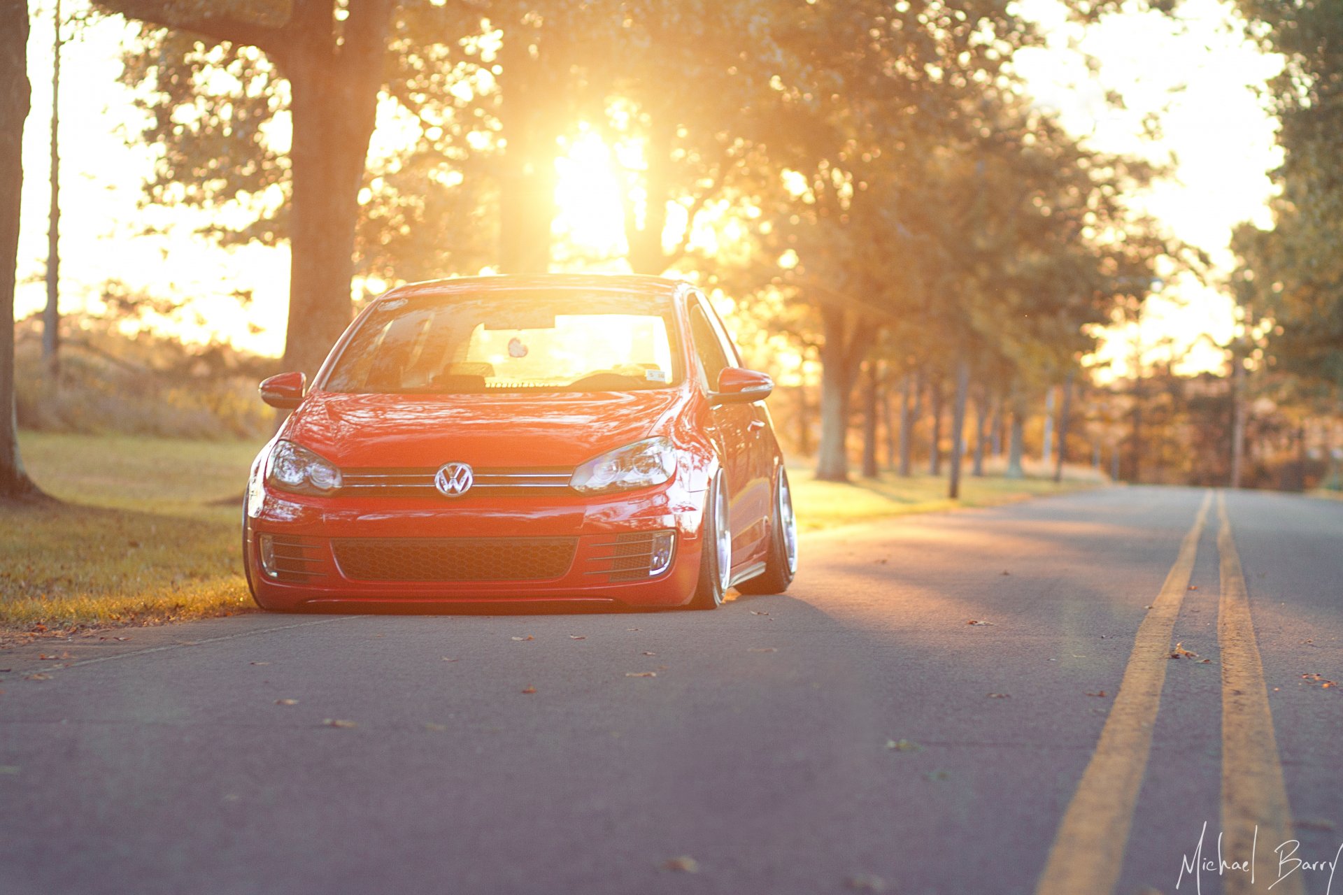 Volkswagen red, image at dawn - desktop wallpapers