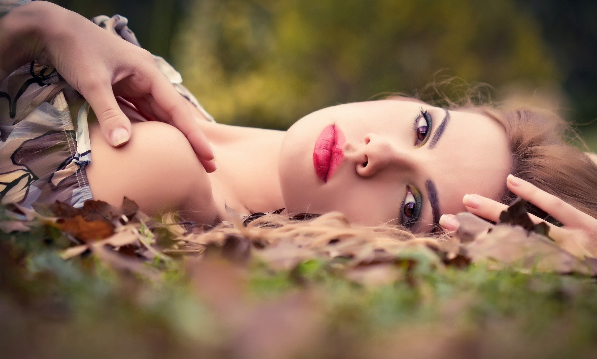 A girl with makeup in nature in autumn - wallpapers for your phone