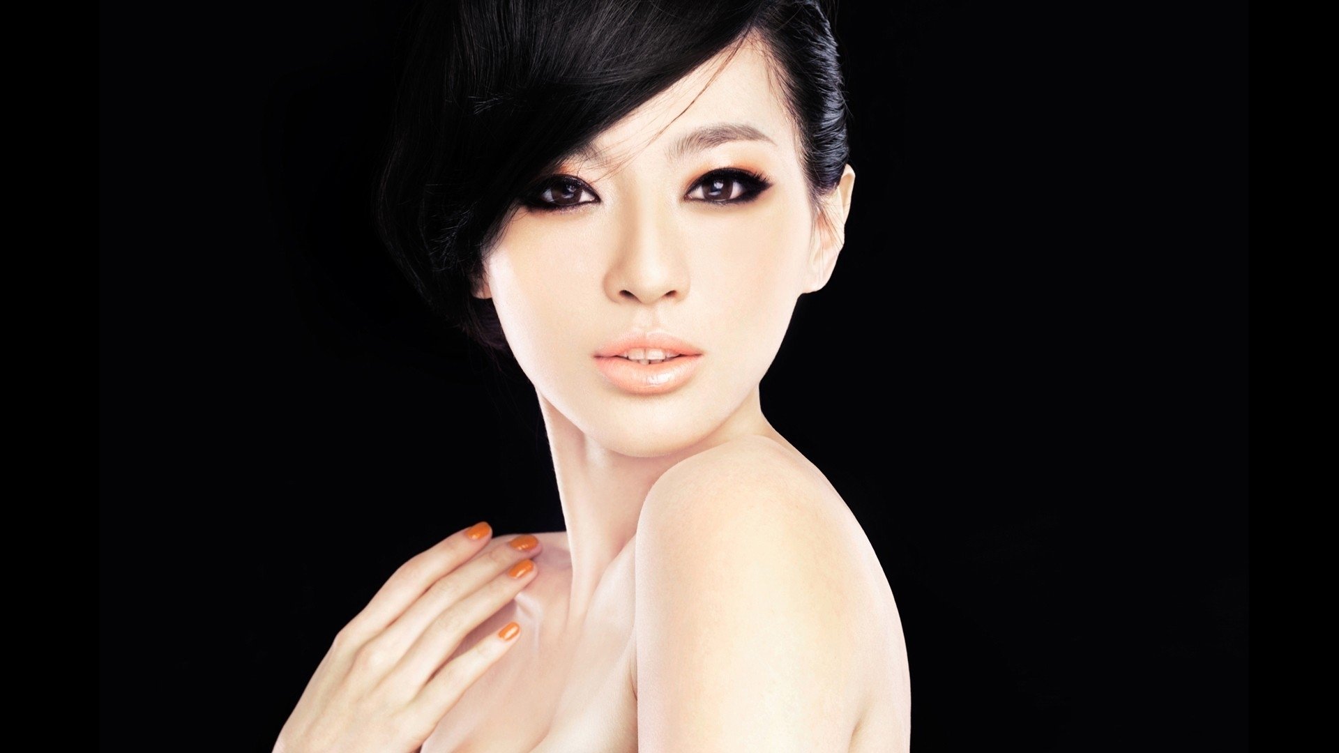 Tags:girl, asian, model, face, view, eyes, hair, hand, black background