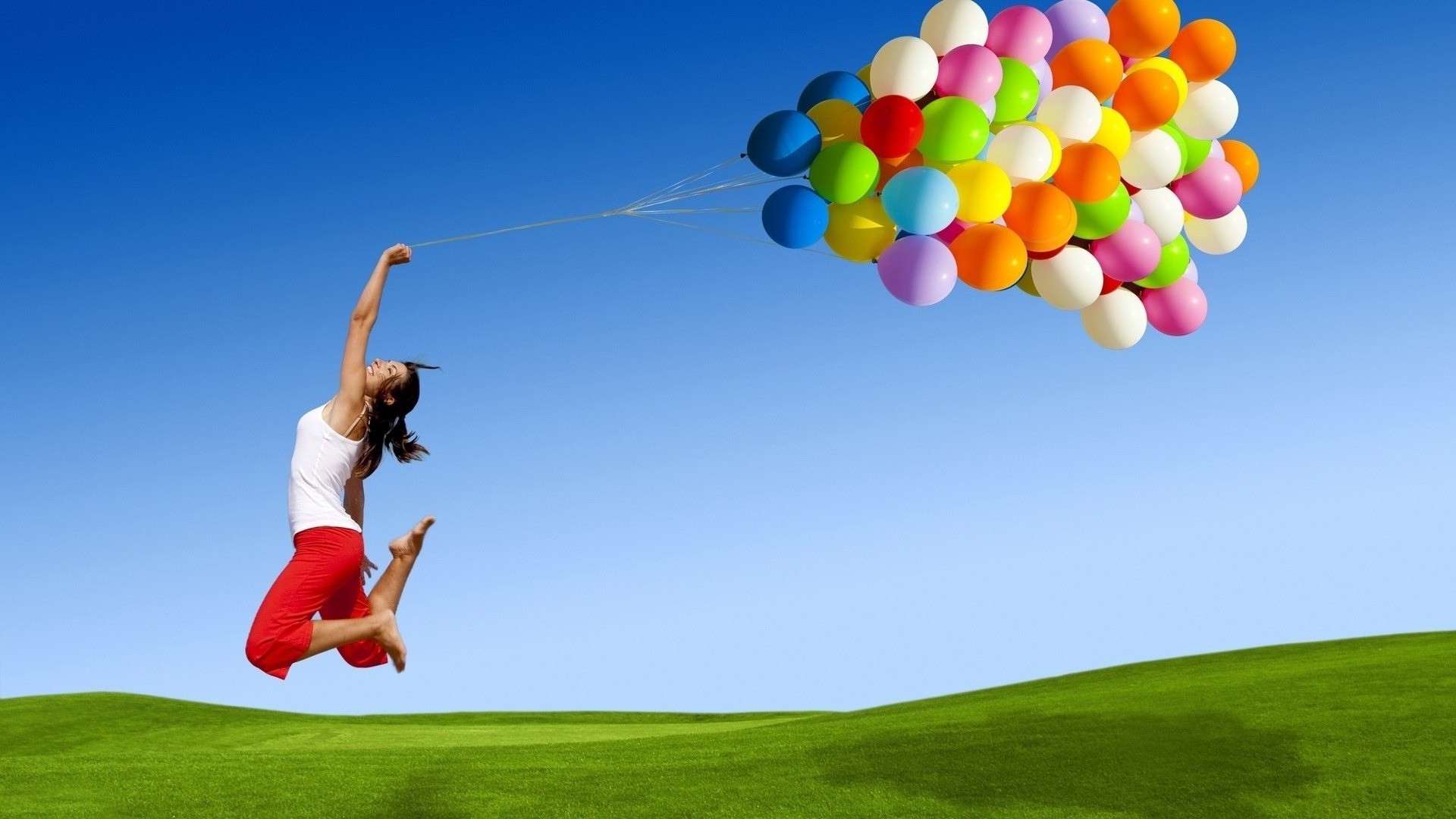 Tags:ky, a woman, girl, brunette, grass, blue, balloon