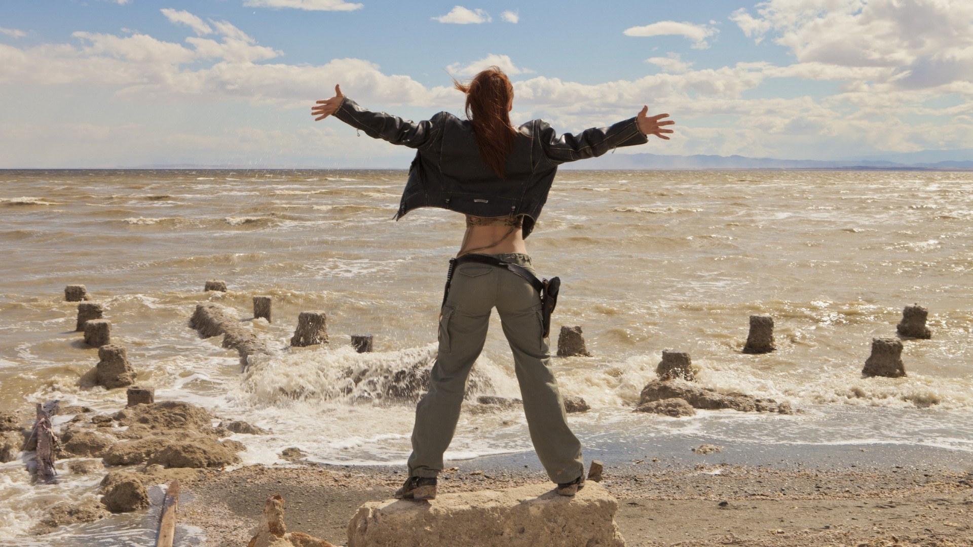 Photo of a girl from behind near the sea - wallpapers for your phone