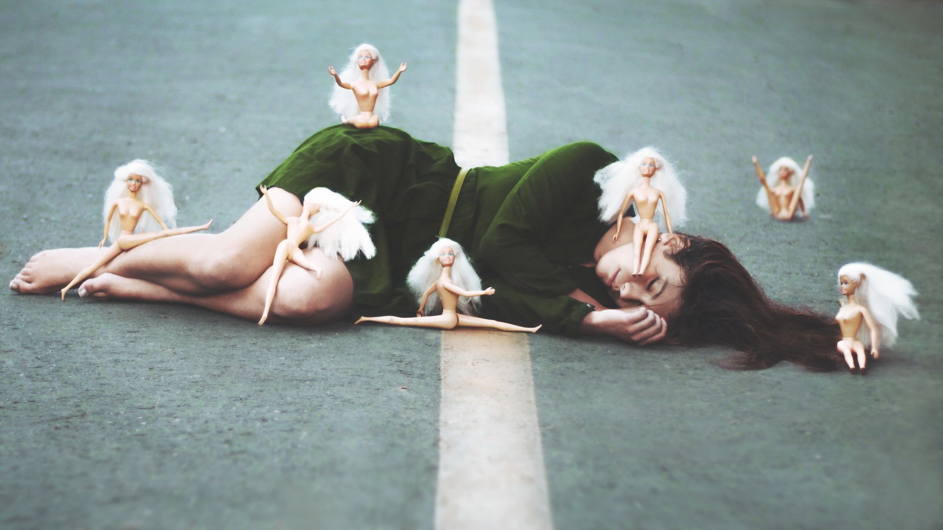 Sleeping girl surrounded by dolls - wallpapers for your phone