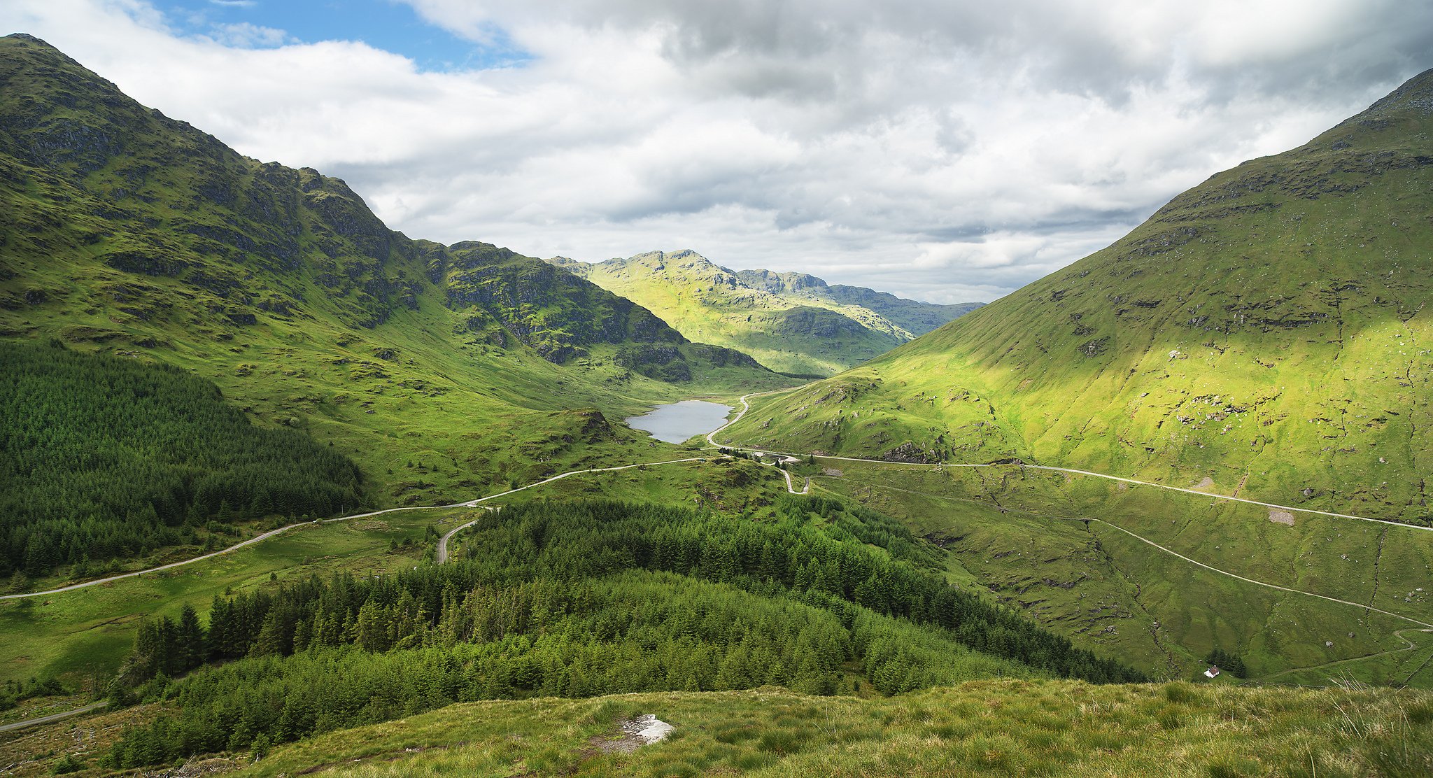 Tags:cotland, mountain, forest, road, lake