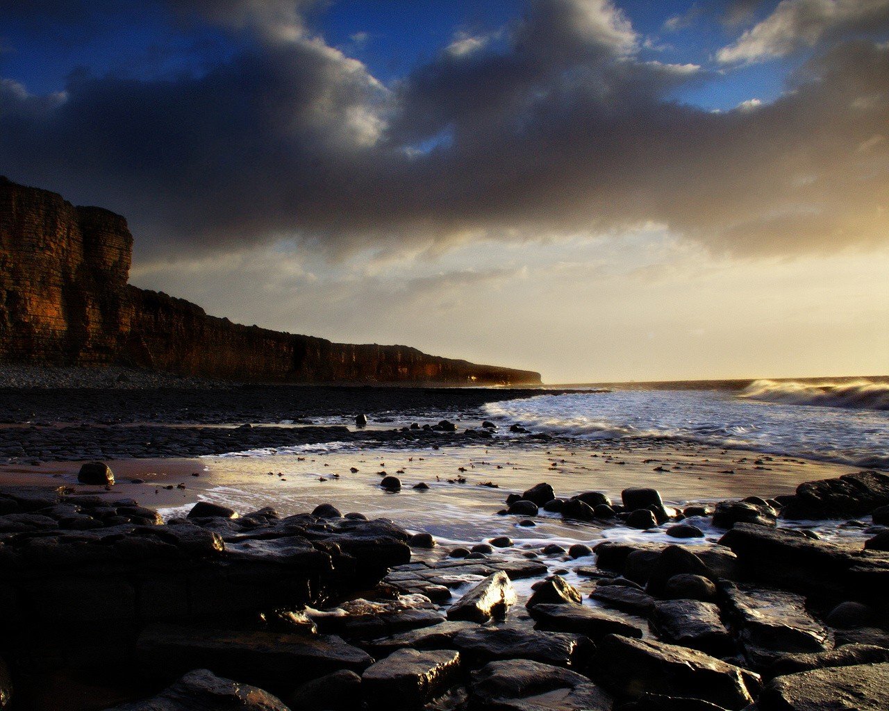 Nature. Night at the sea with a rocky shore - wallpapers for your phone