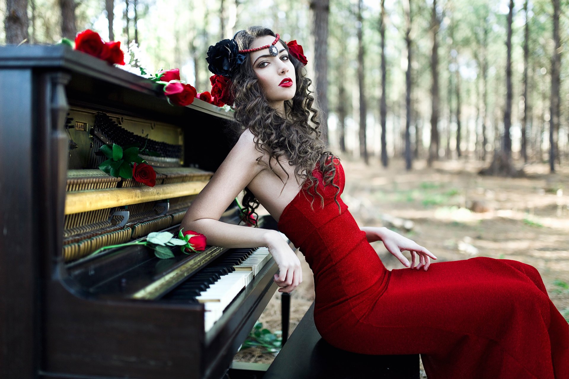 A girl with roses on a holoay near the fortopianno - desktop wallpapers