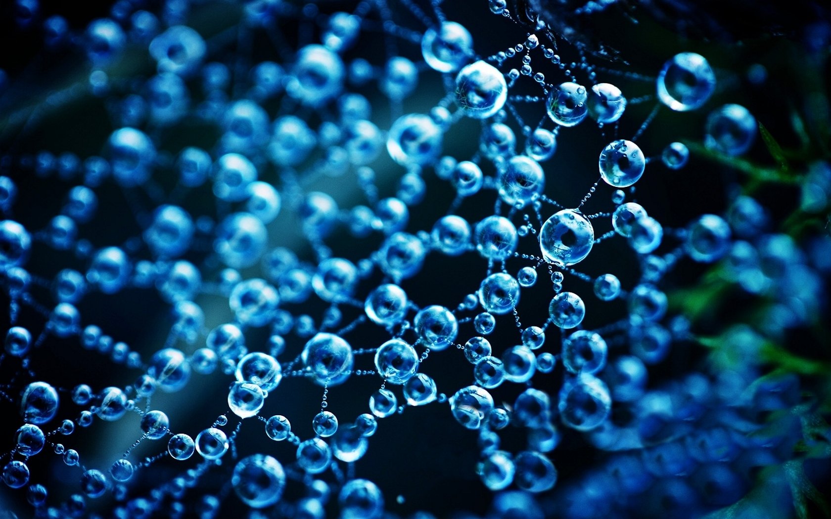 Dew drops on a spider web on a background of greeneryDew drops on a spider web on a background of greenery