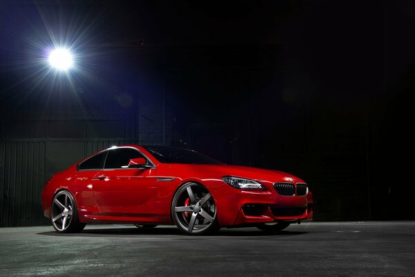 Red bmw 6 Series on the moonlight playground