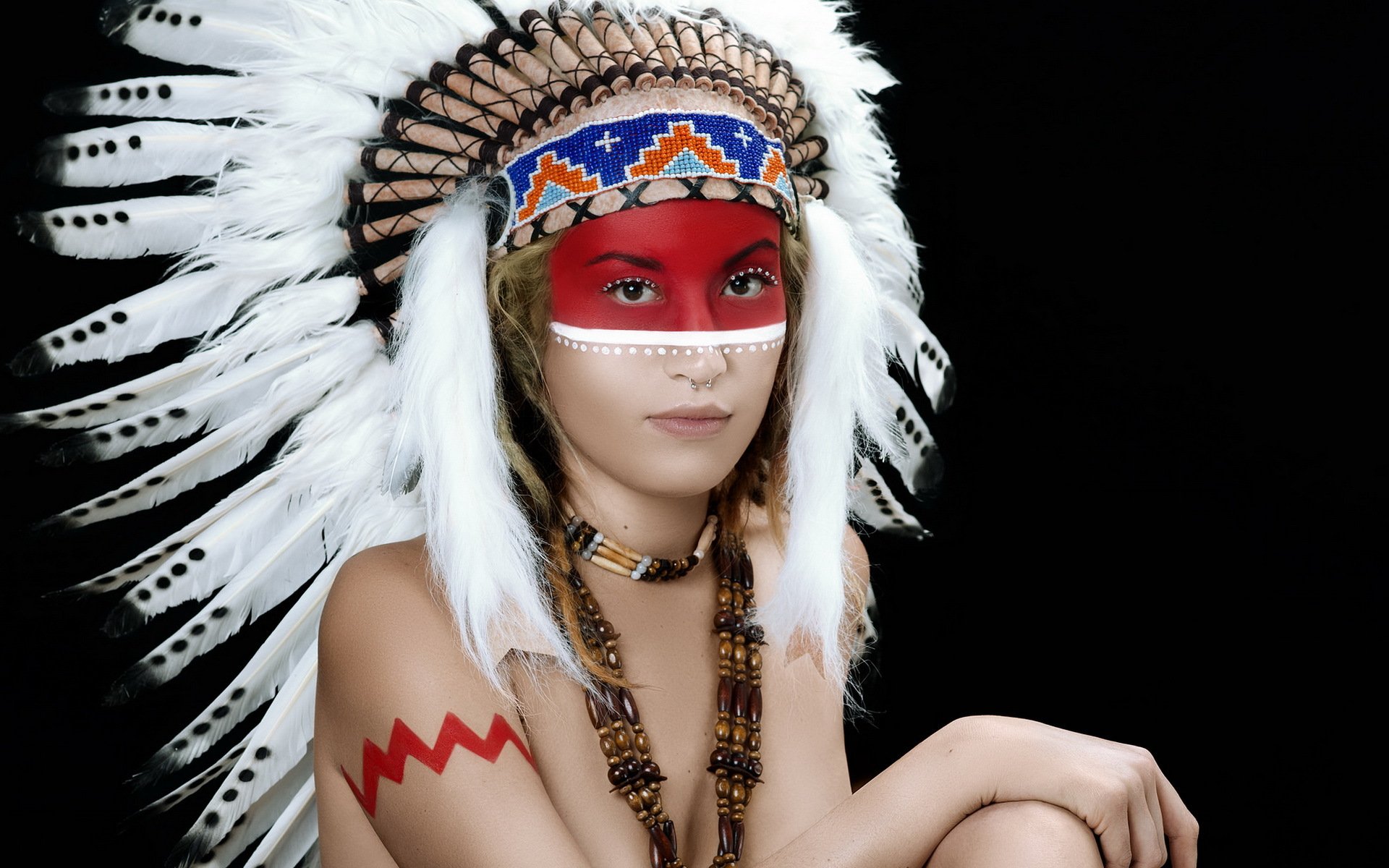 The girl in the outfit of indian tribes