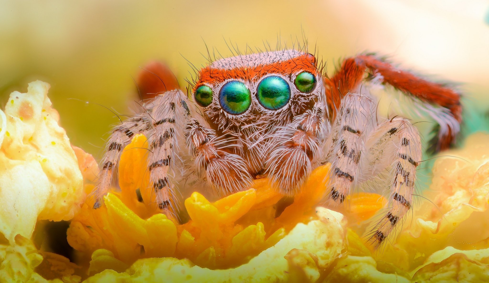 On a pink-orange petal, an insect with antennae and legsOn a pink-orange petal, an insect with antennae and legs