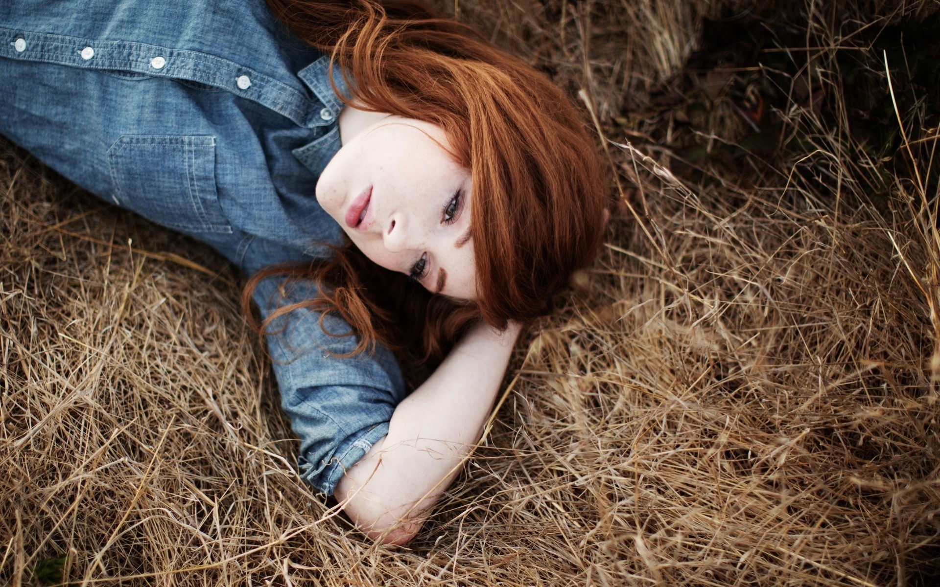 Naked blonde shows her hips and breasts in the hayloftNaked blonde shows her hips and breasts in the hayloft