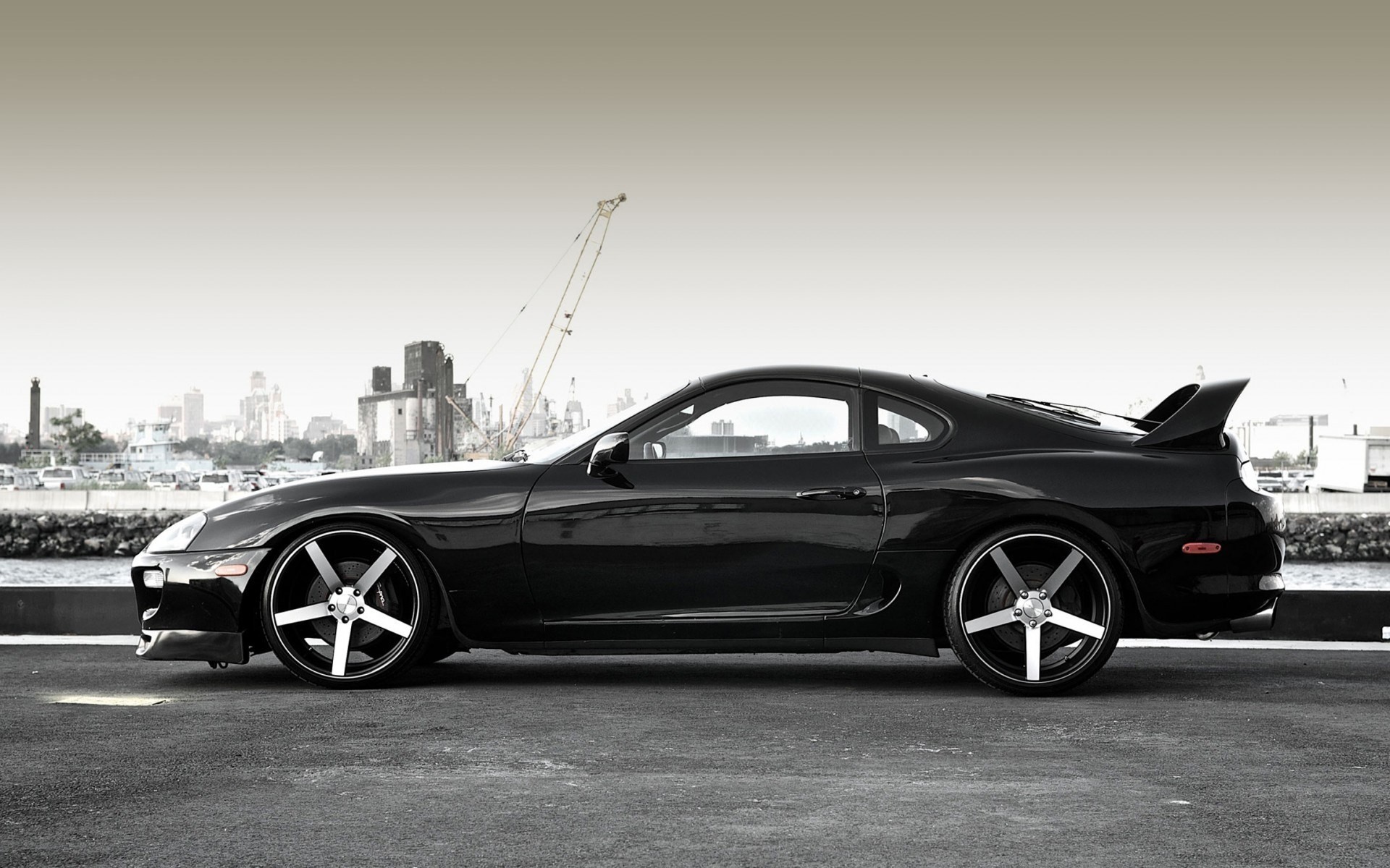 Black powerful Toyota in black and white style