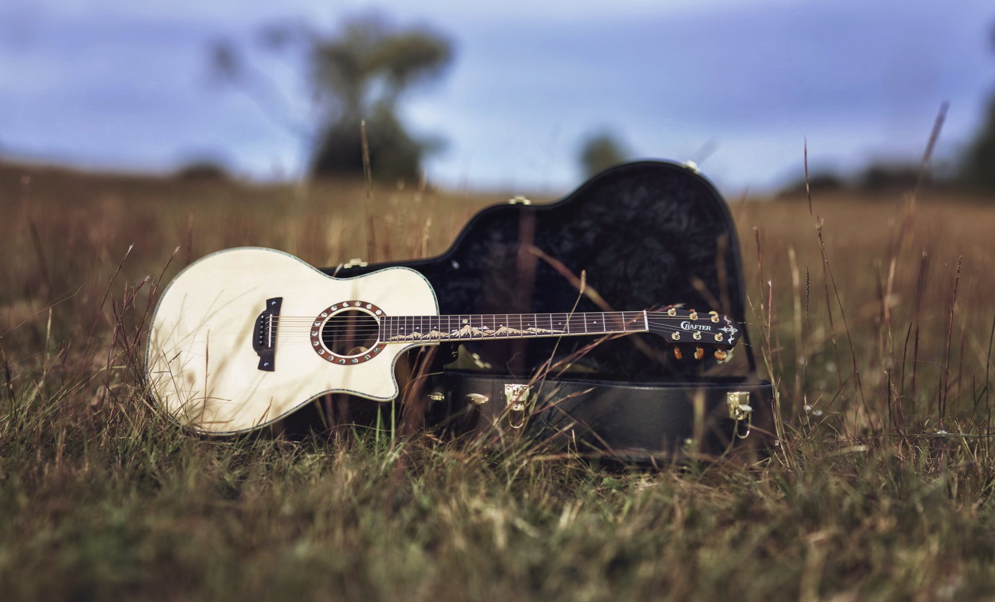 Background with guitar on the field