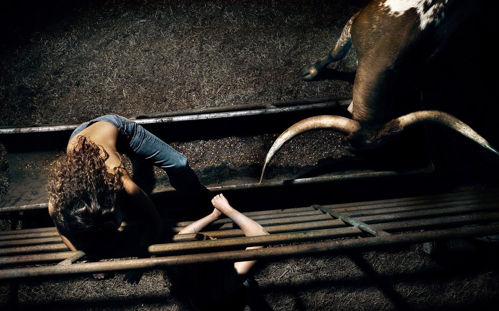 The bull drove the horns of a girl in the arena