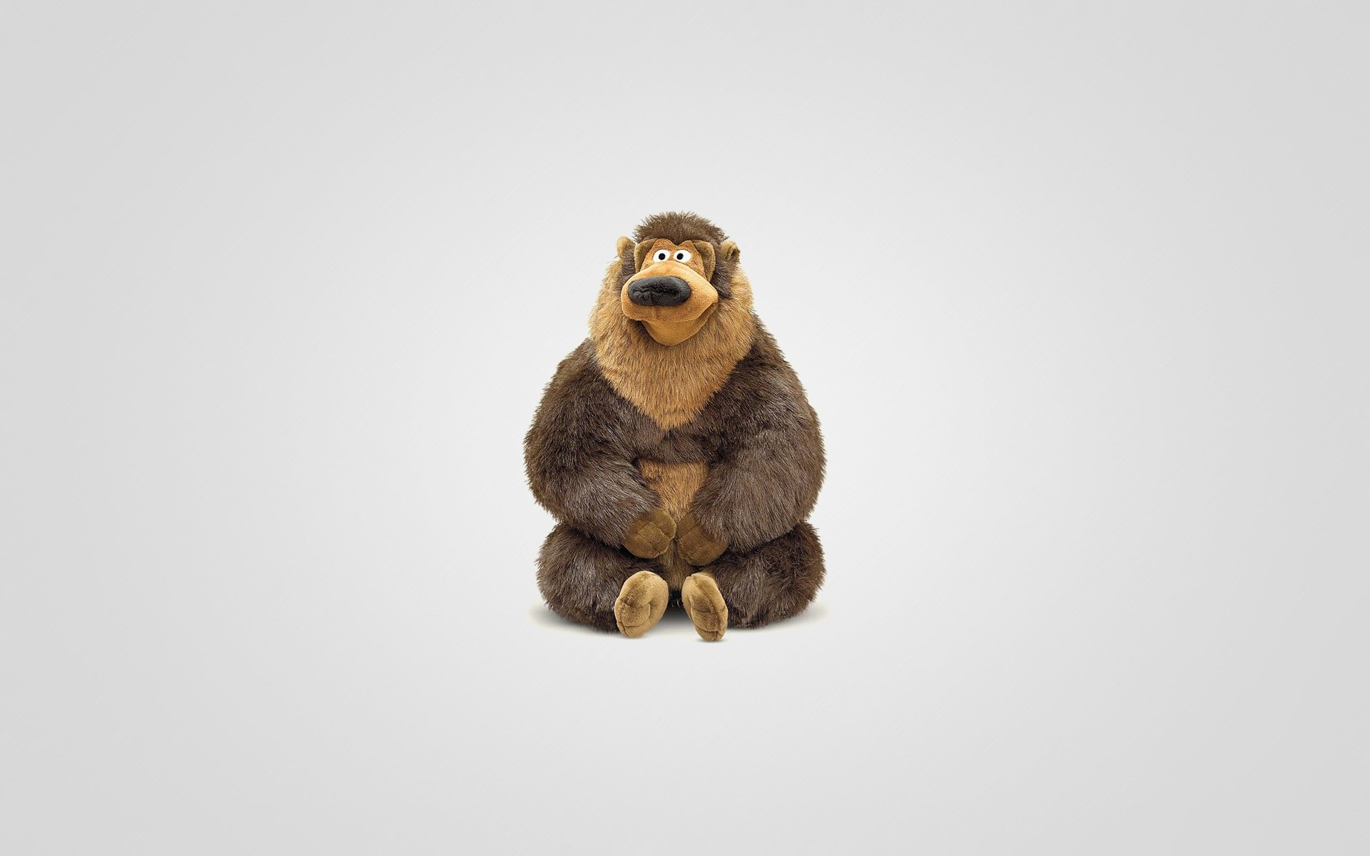 A toy bear cub sitting with its back against the background of natureA toy bear cub sitting with its back against the background of nature
