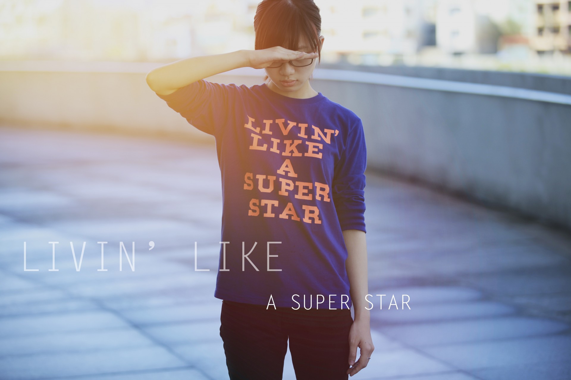 A girl in a blue T-shirt with inscriptions and a baseball cap in the rays of the bright sun