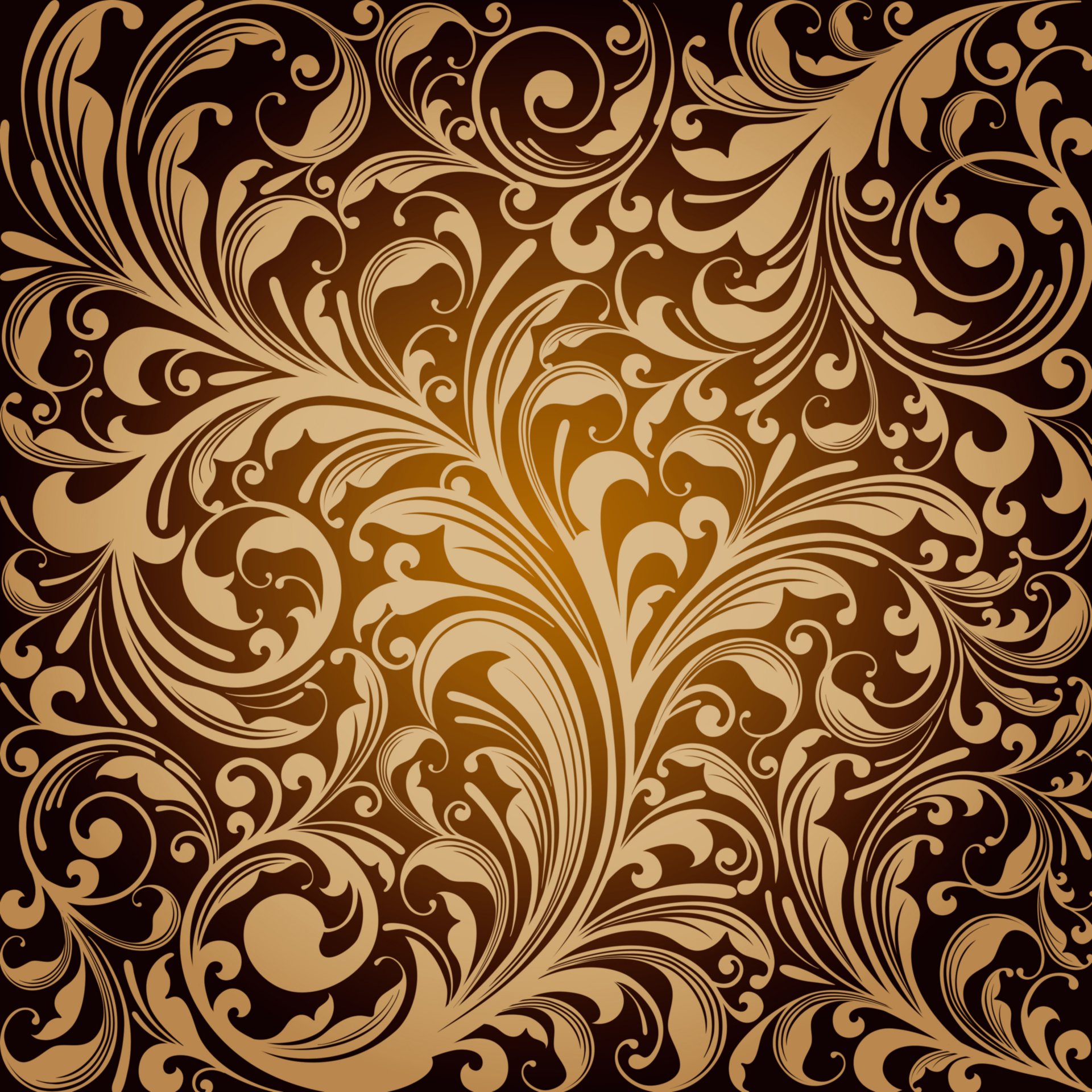 Floral gold ornament on a black background