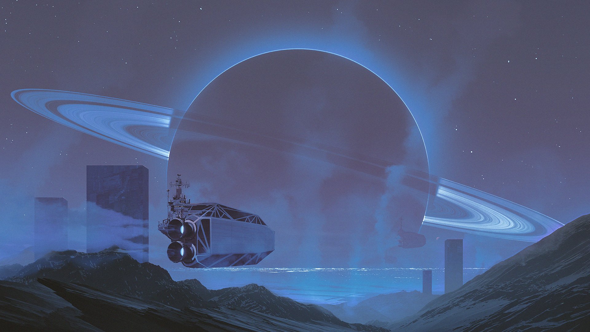 Art is a fantastic metropolis with bird-like creatures and flying objectsArt is a fantastic metropolis with bird-like creatures and flying objects