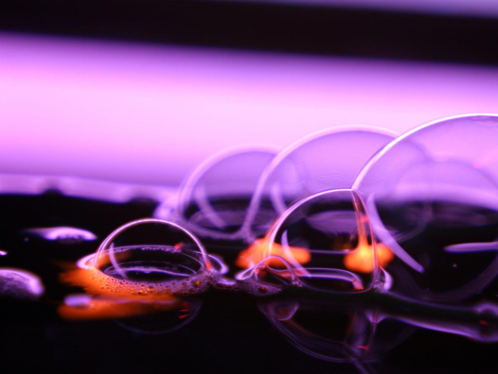 The bubbles are colorless against the background of green leaves in the rays of the sunThe bubbles are colorless against the background of green leaves in the rays of the sun