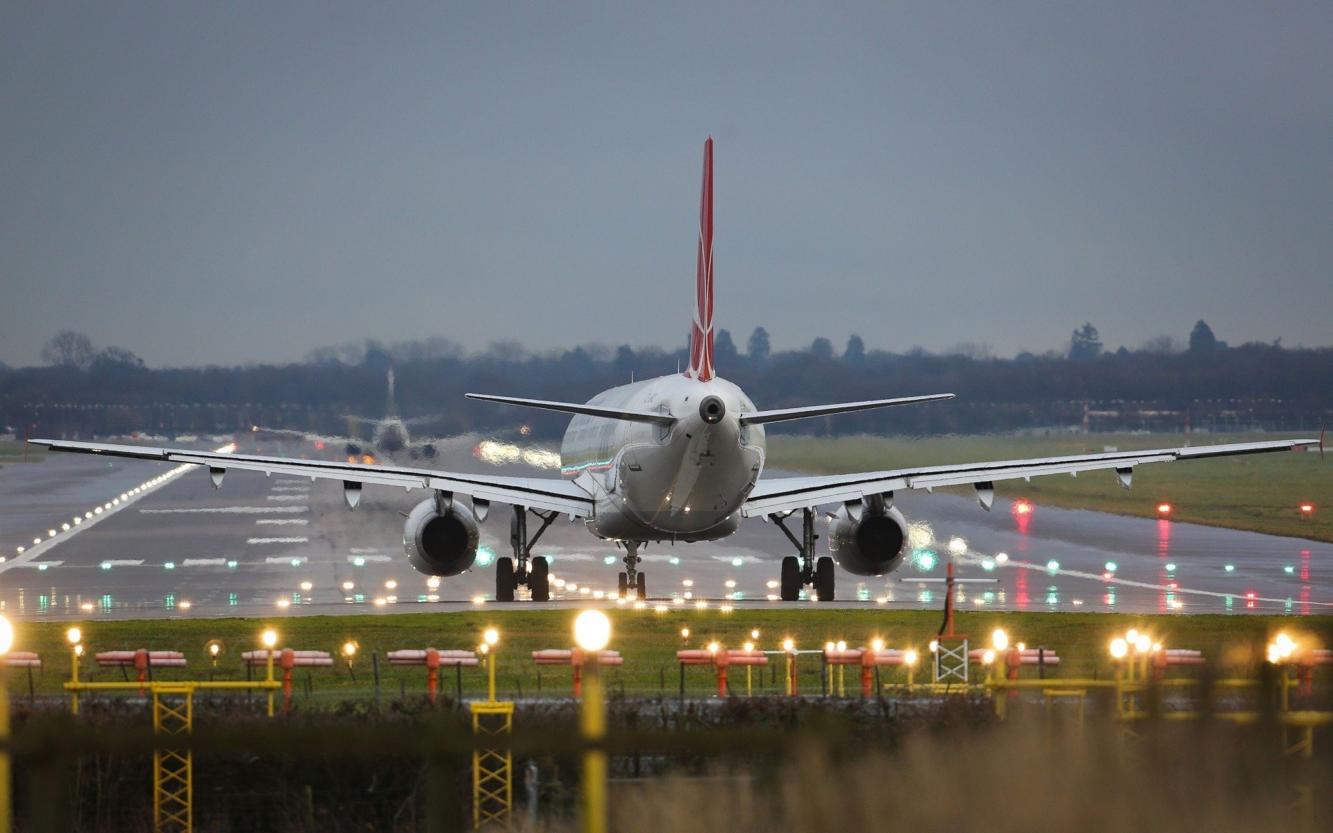 Taking off the plane from the runway at the airportTaking off the plane from the runway at the airport