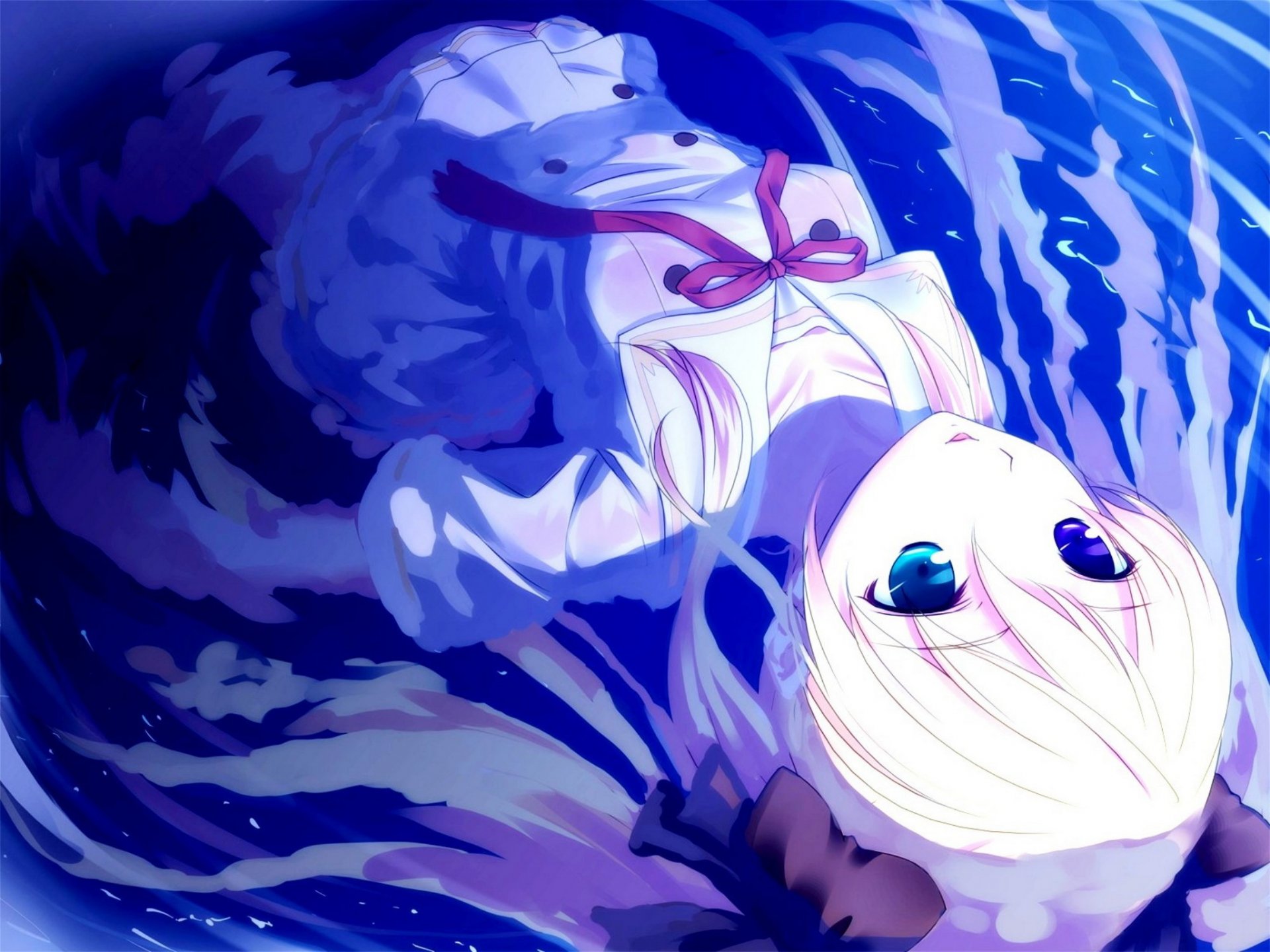 Blue-eyed girl with ears on the background of the Moon from the anime