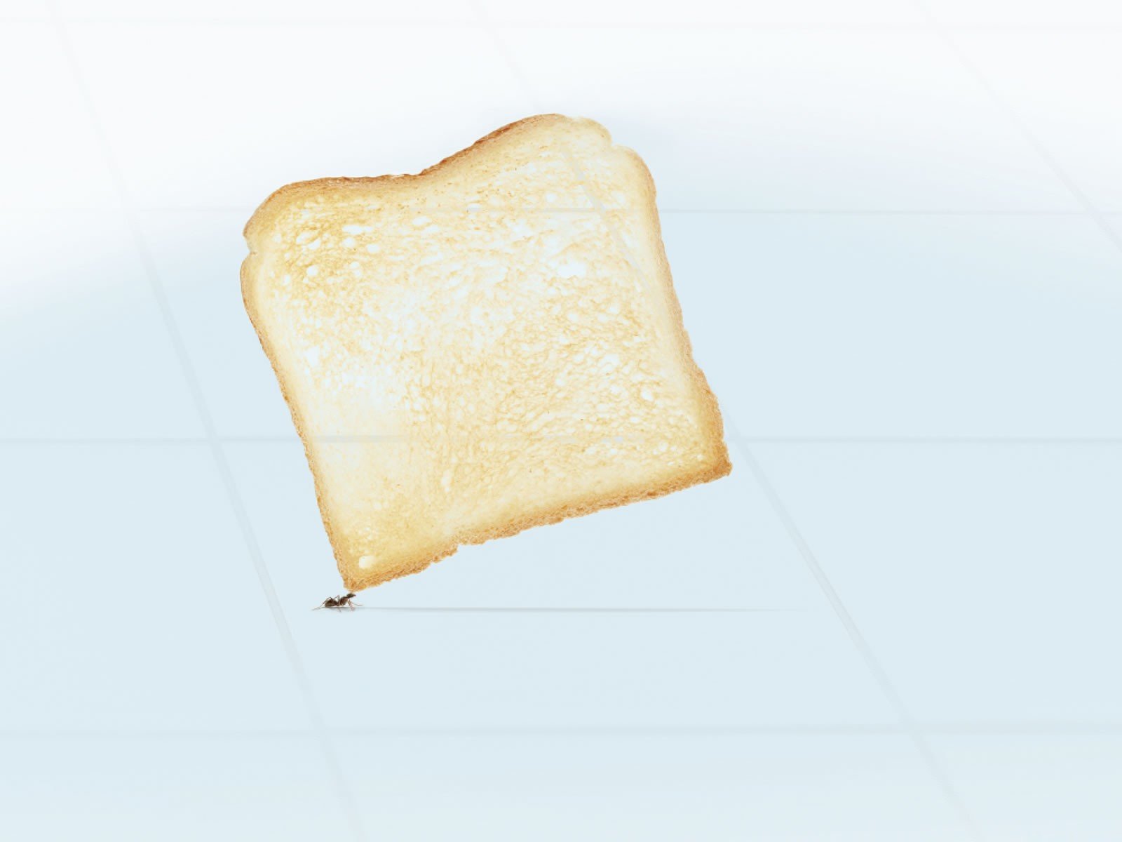 An ant carries a toast of bread