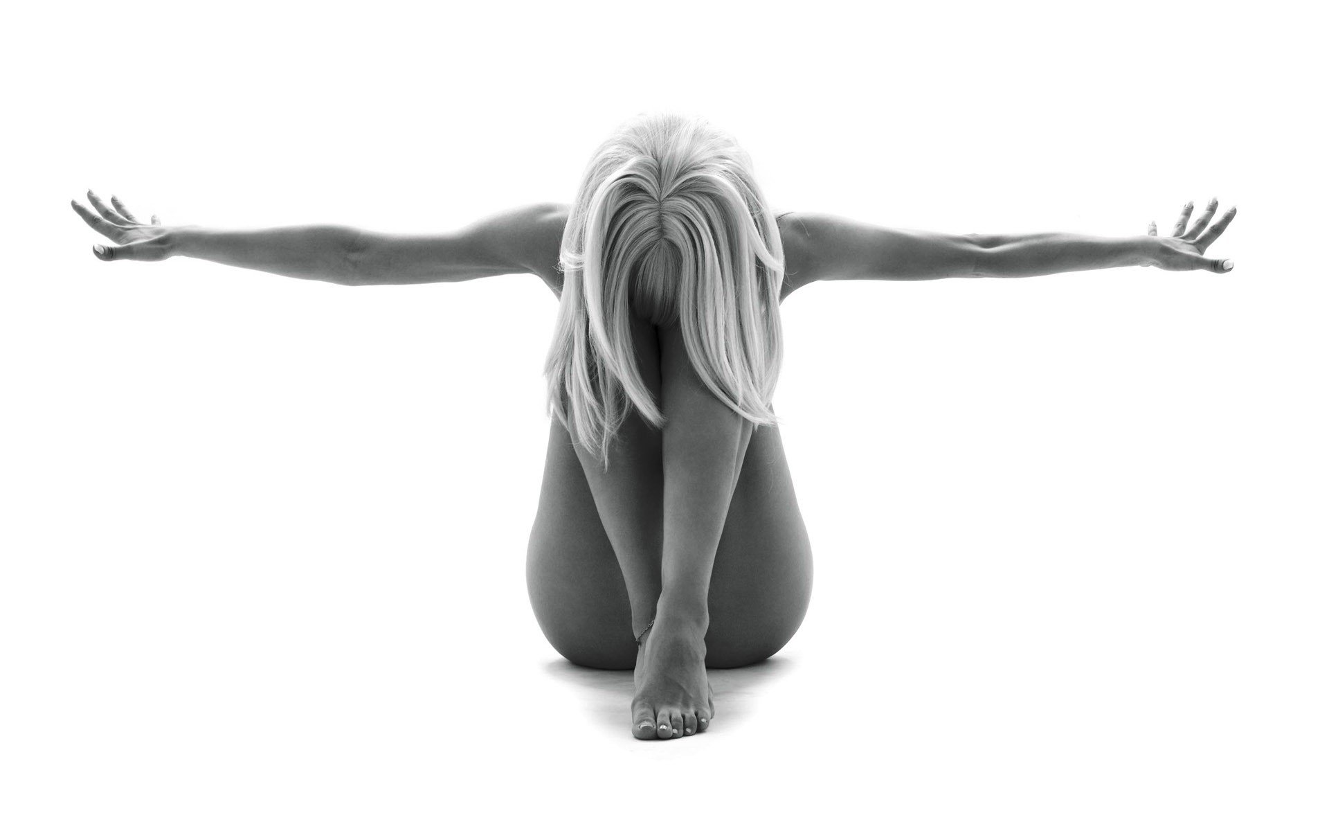 A naked girl is sitting with her arms outstretchedA naked girl is sitting with her arms outstretched