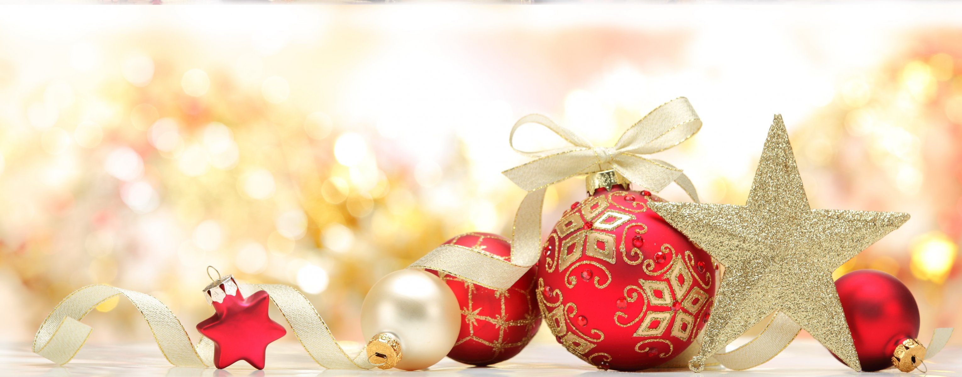 Christmas gift in a box with a bow and christmas ballsChristmas gift in a box with a bow and Christmas balls