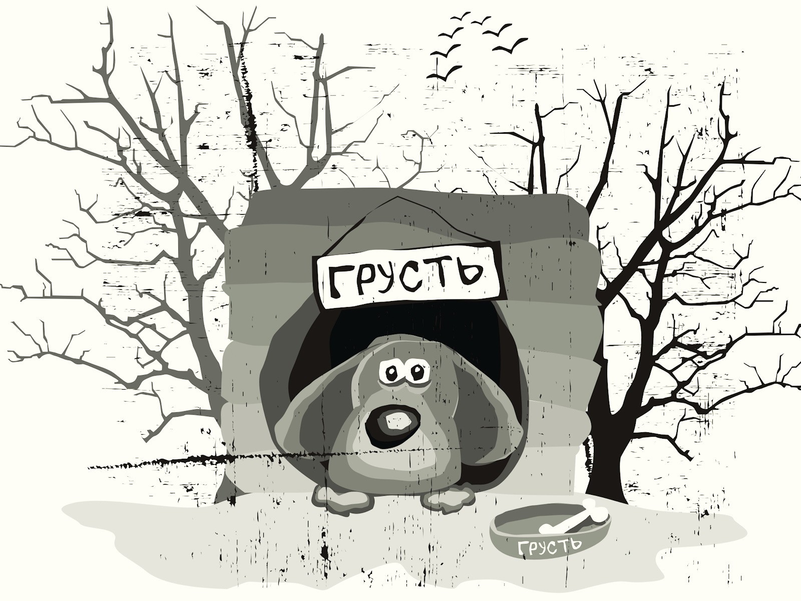 Sad dog in a booth against the background of bare treesSad dog in a booth against the background of bare trees