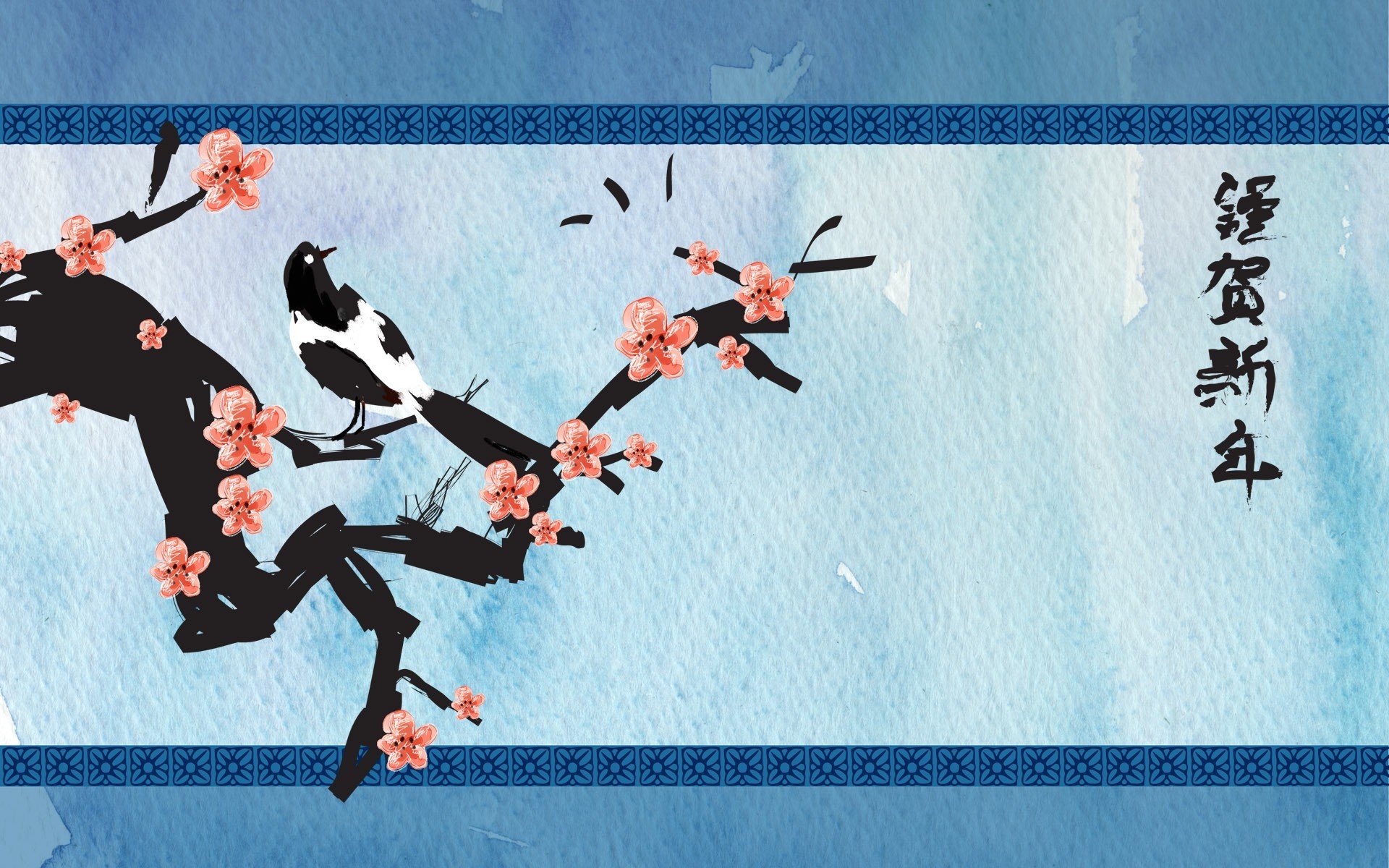Flowers and drops with highlights on a blue backgroundFlowers and drops with highlights on a blue background