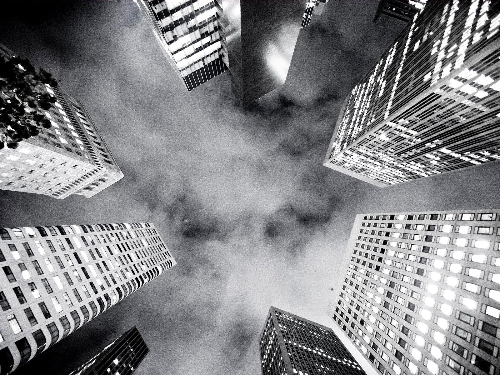 View from below of tall skyscrapers