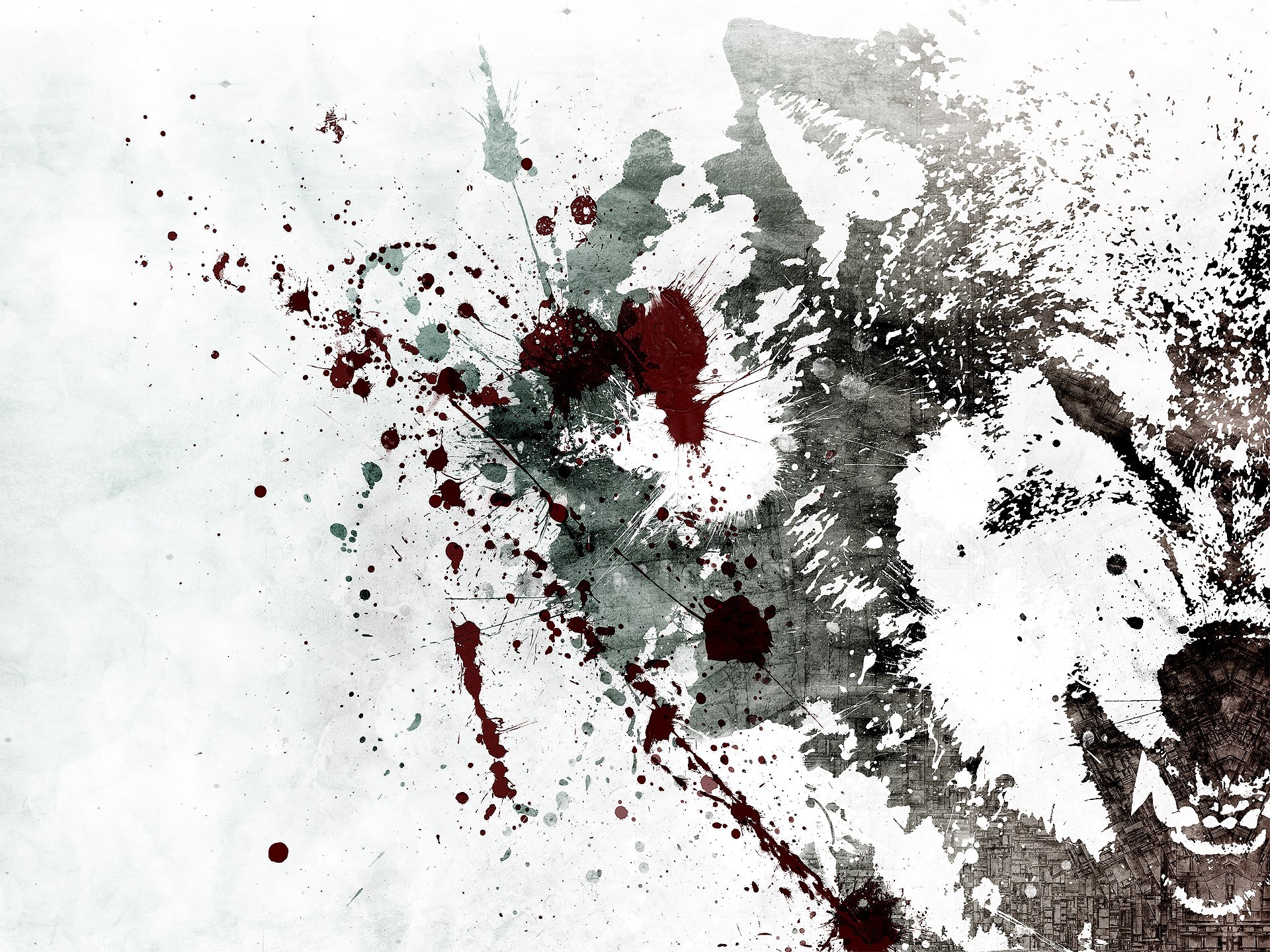Black and white wolf look at each other in the moonlightBlack and white wolf look at each other in the moonlight