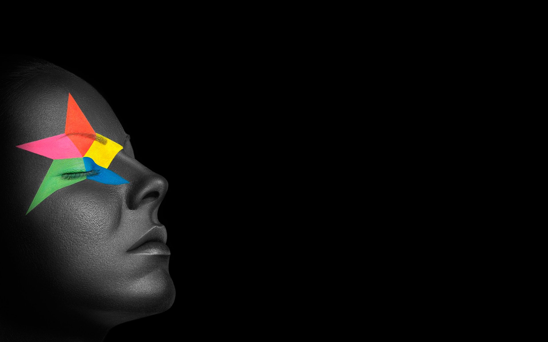 A monkey with makeup and indian feathers holds a microphoneA monkey with makeup and Indian feathers holds a microphone