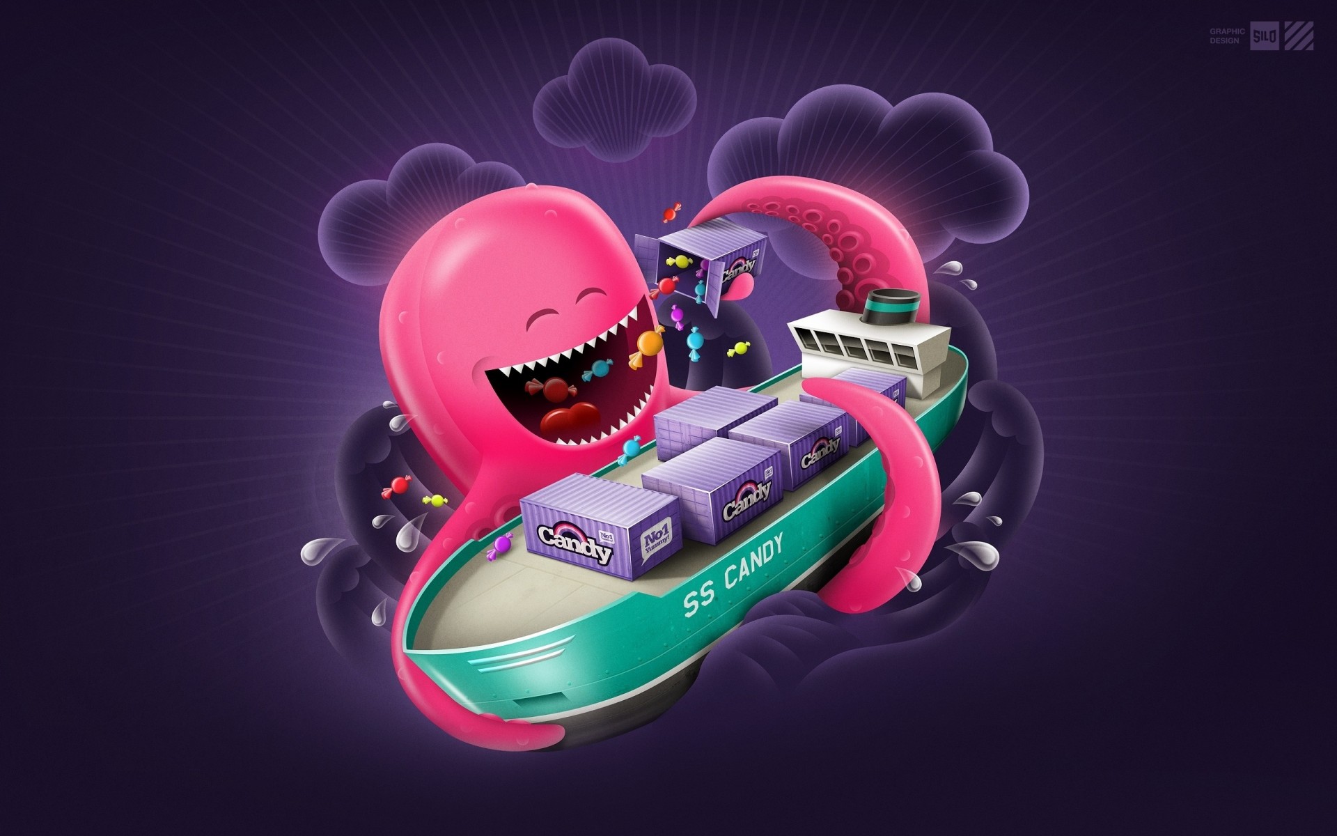 Bright octopus captured the ship