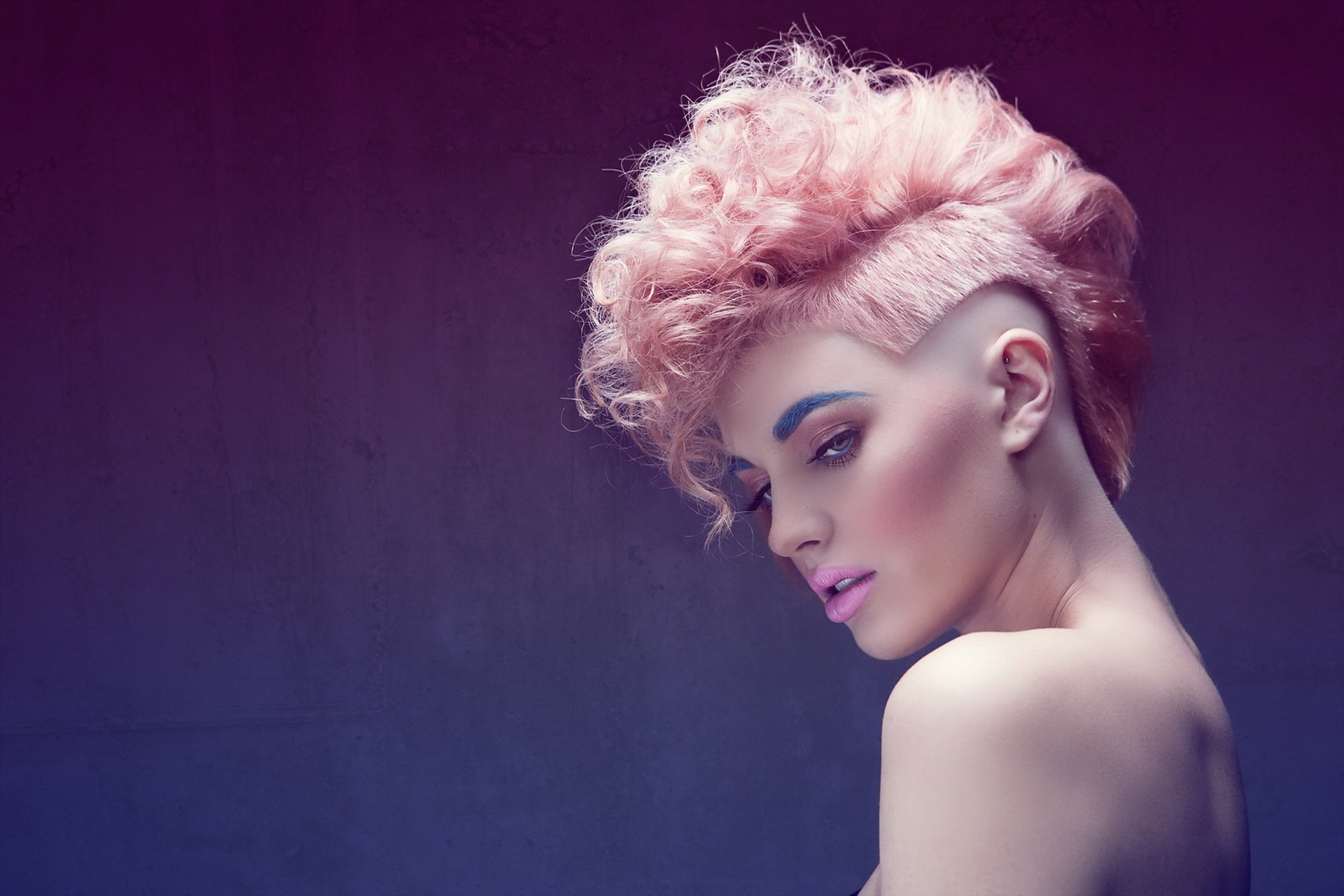 A girl on a purple background with beautiful makeupA girl on a purple background with beautiful makeup