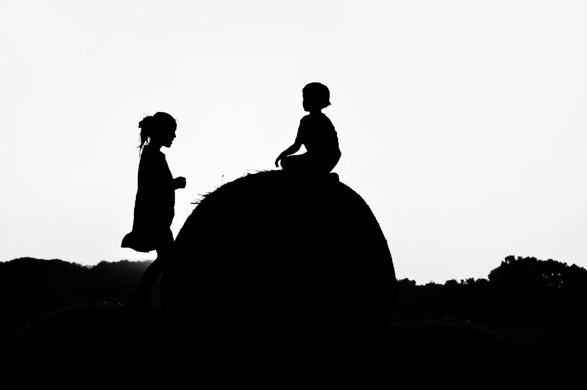 Reflections of silhouettes of running children on a red backgroundReflections of silhouettes of running children on a red background