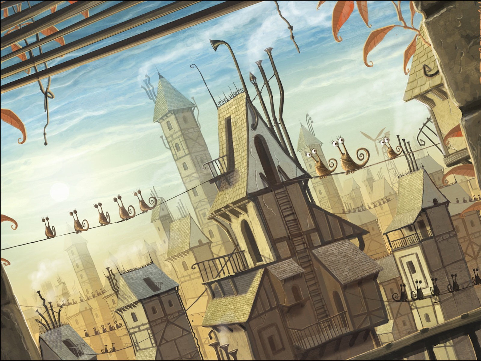 A city with snails on wires