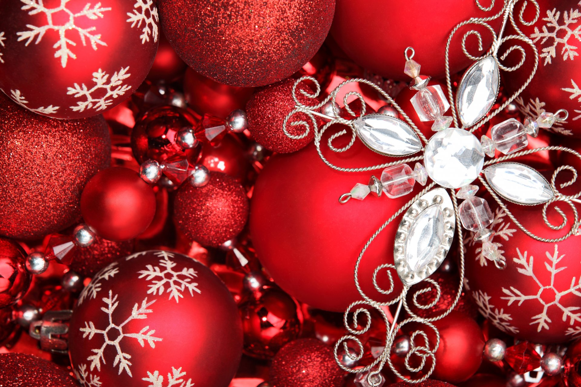 Christmas gift in a red wrapper with a bow with Christmas decorations and a golden festive ribbon
