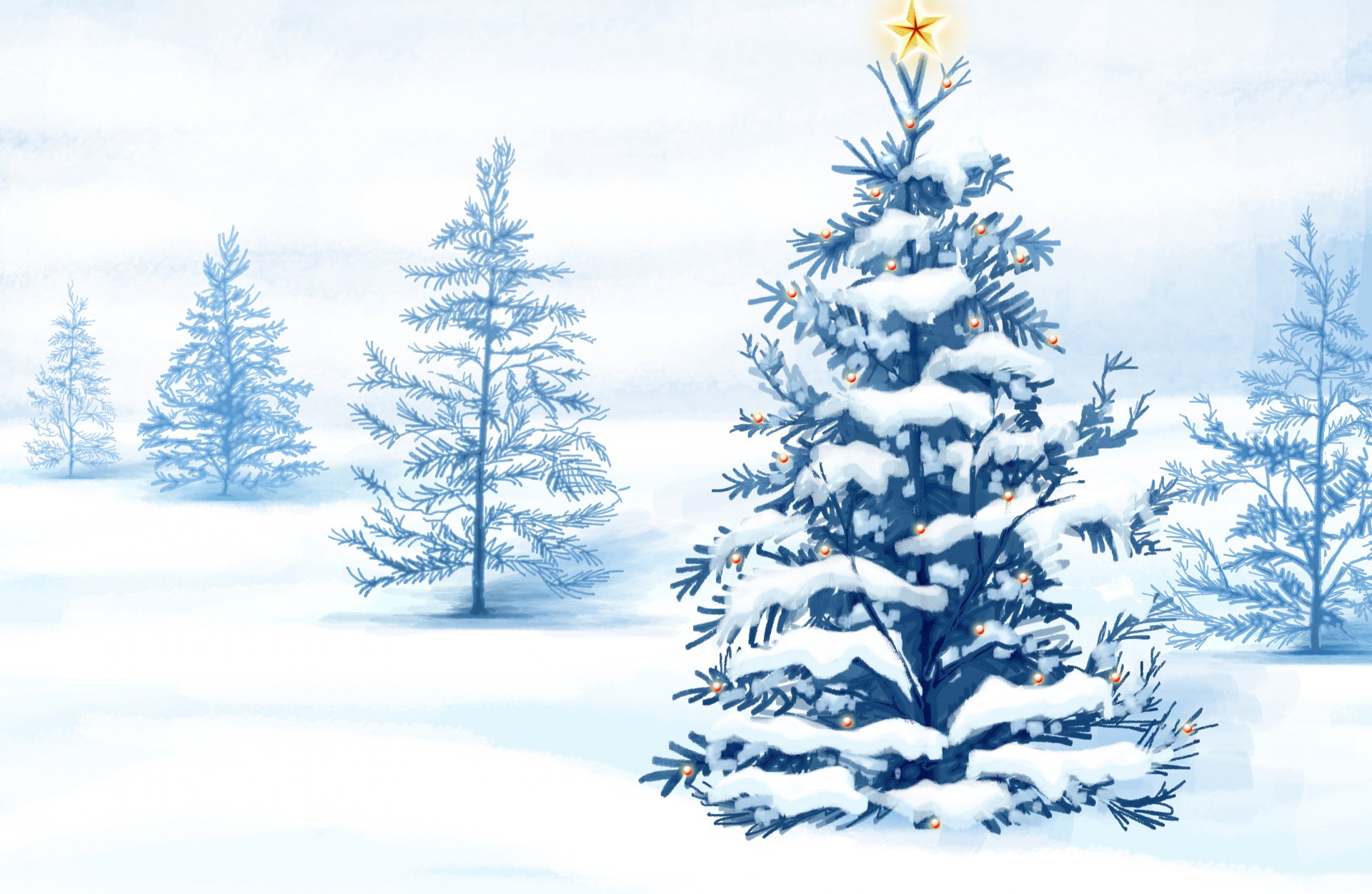 A decorated christmas tree in front of a cozy houseA decorated Christmas tree in front of a cozy house