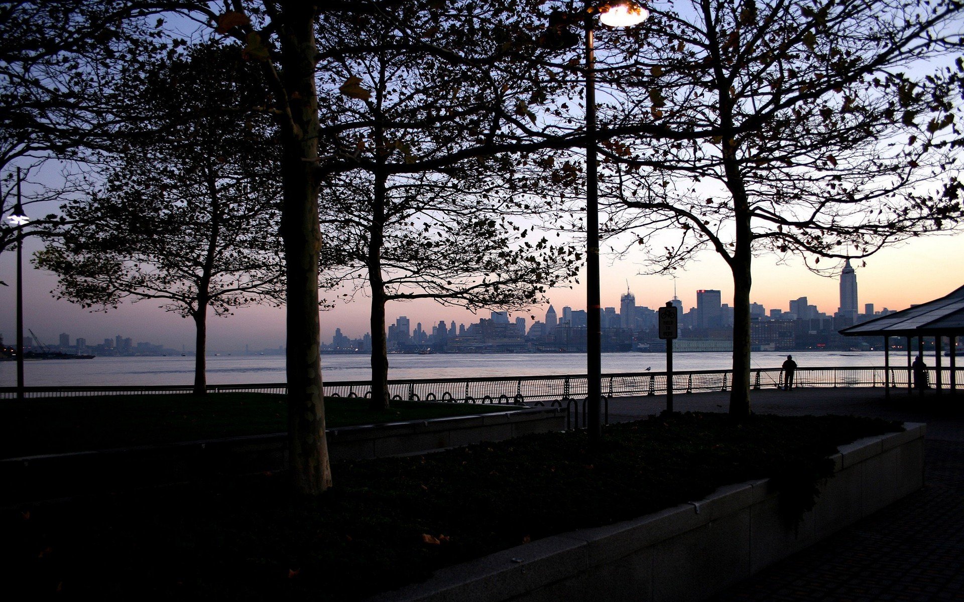 Romance, sunset on the river bank, metropolis in the distanceRomance, sunset on the river bank, metropolis in the distance