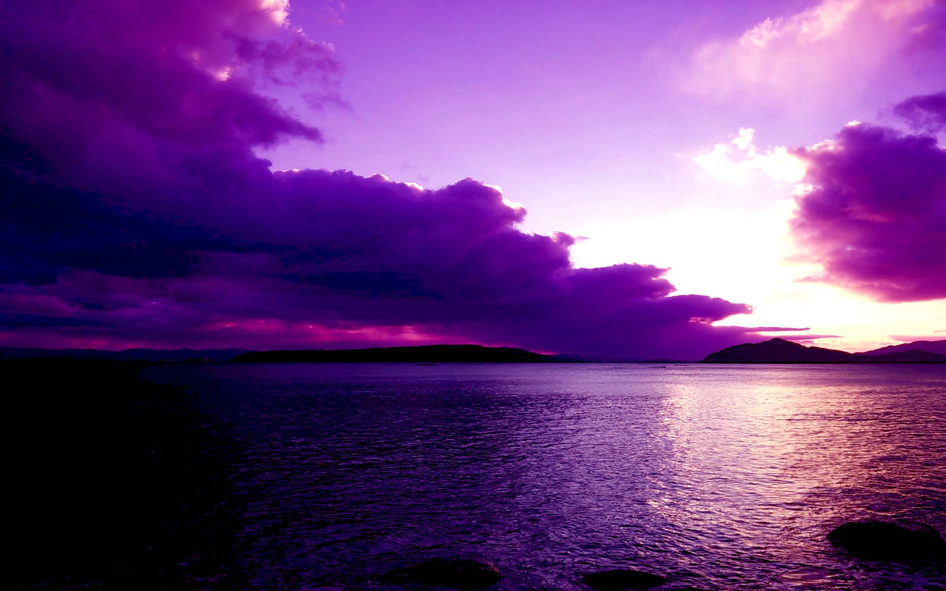 Cloudy sunset on a lake in the mountains