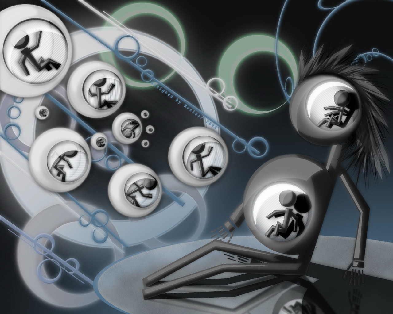 3d balls are in an unusual room, abstraction