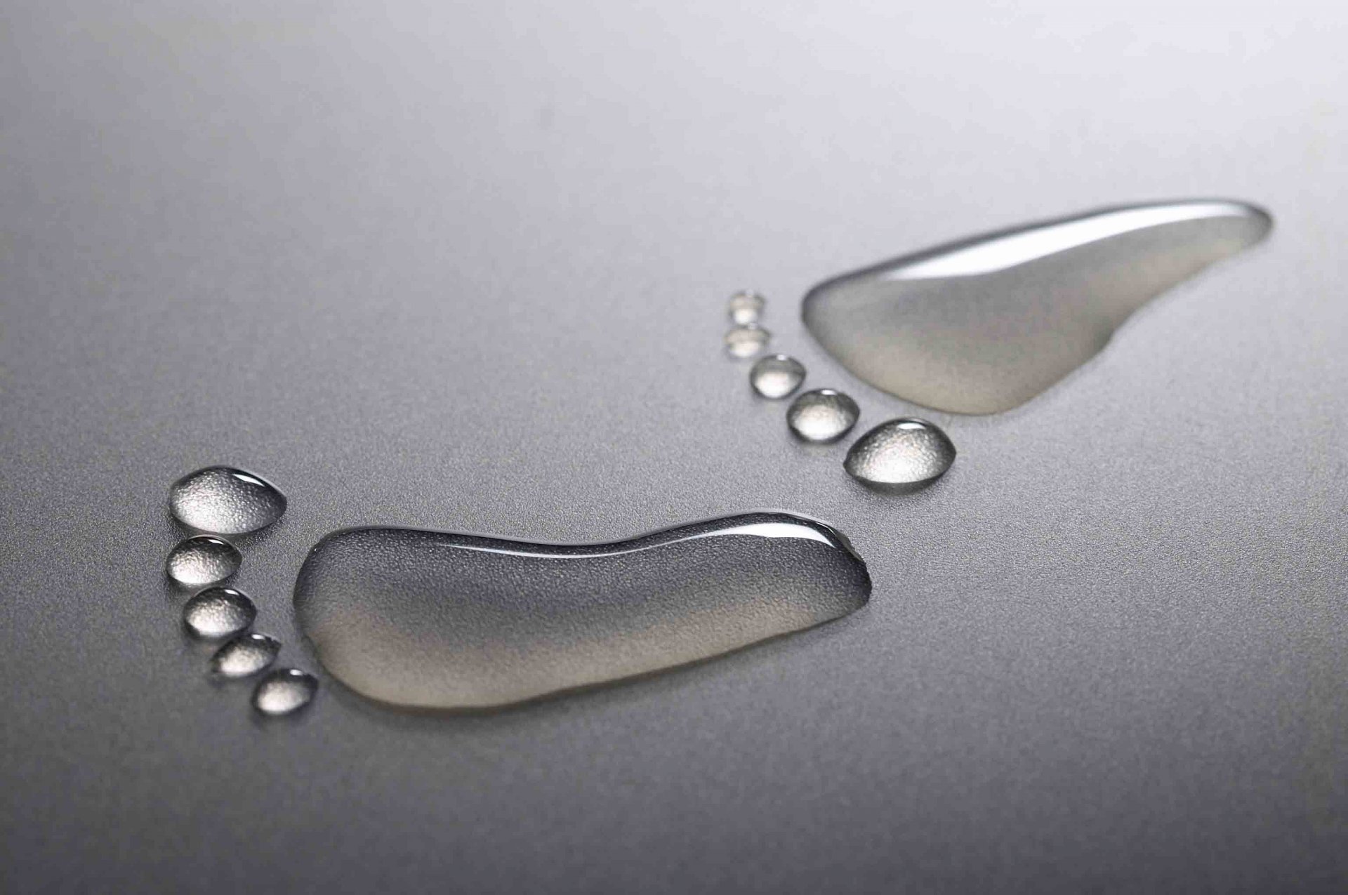 Water drops in the form of a footprint on a gray backgroundWater drops in the form of a footprint on a gray background