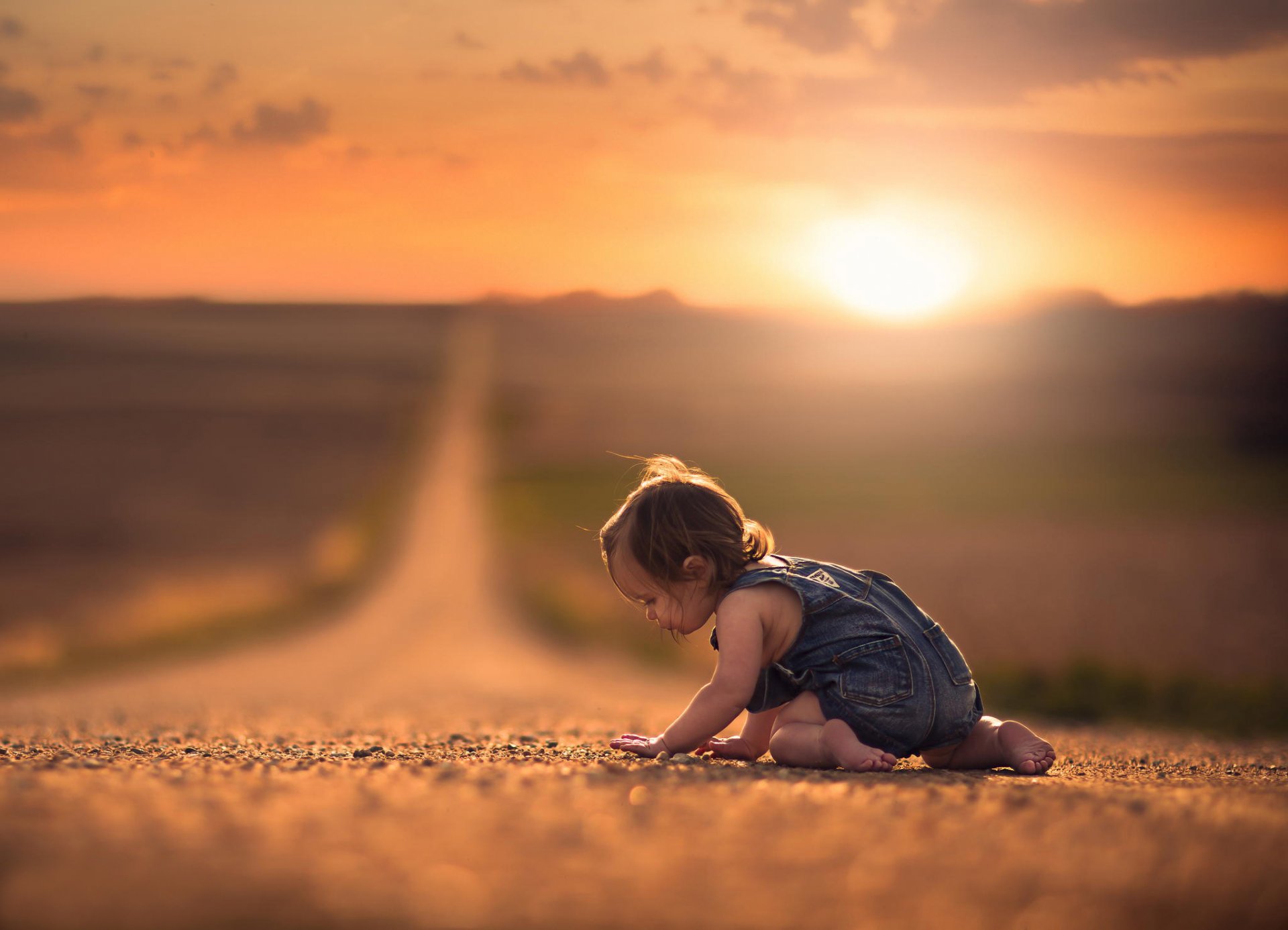 In the hot summer, it's nice to sit on a pebble by the lake, even if you're a little girlIn the hot summer, it's nice to sit on a pebble by the lake, even if you're a little girl