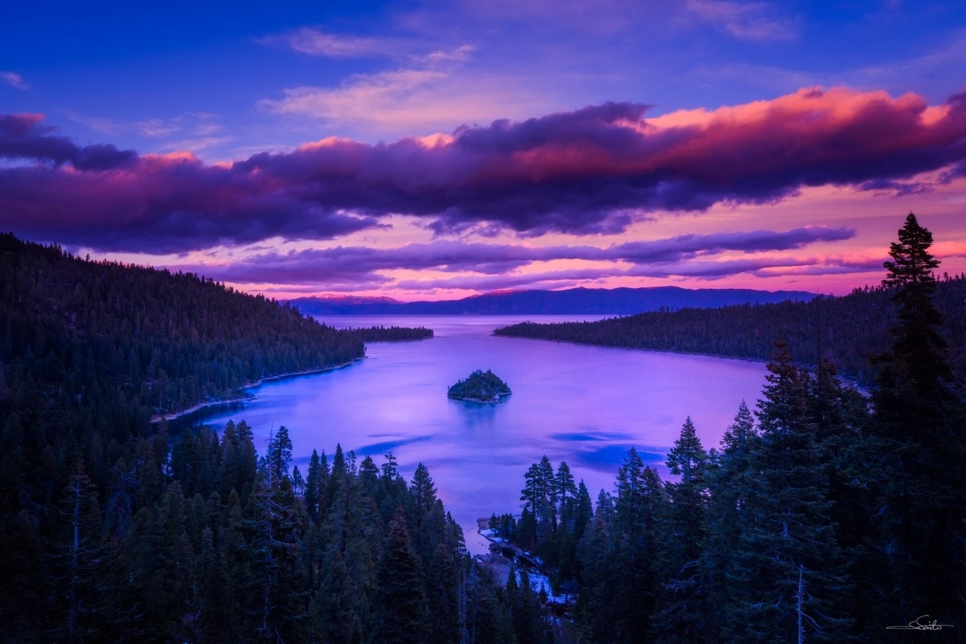Purple dawn over sleeping trees