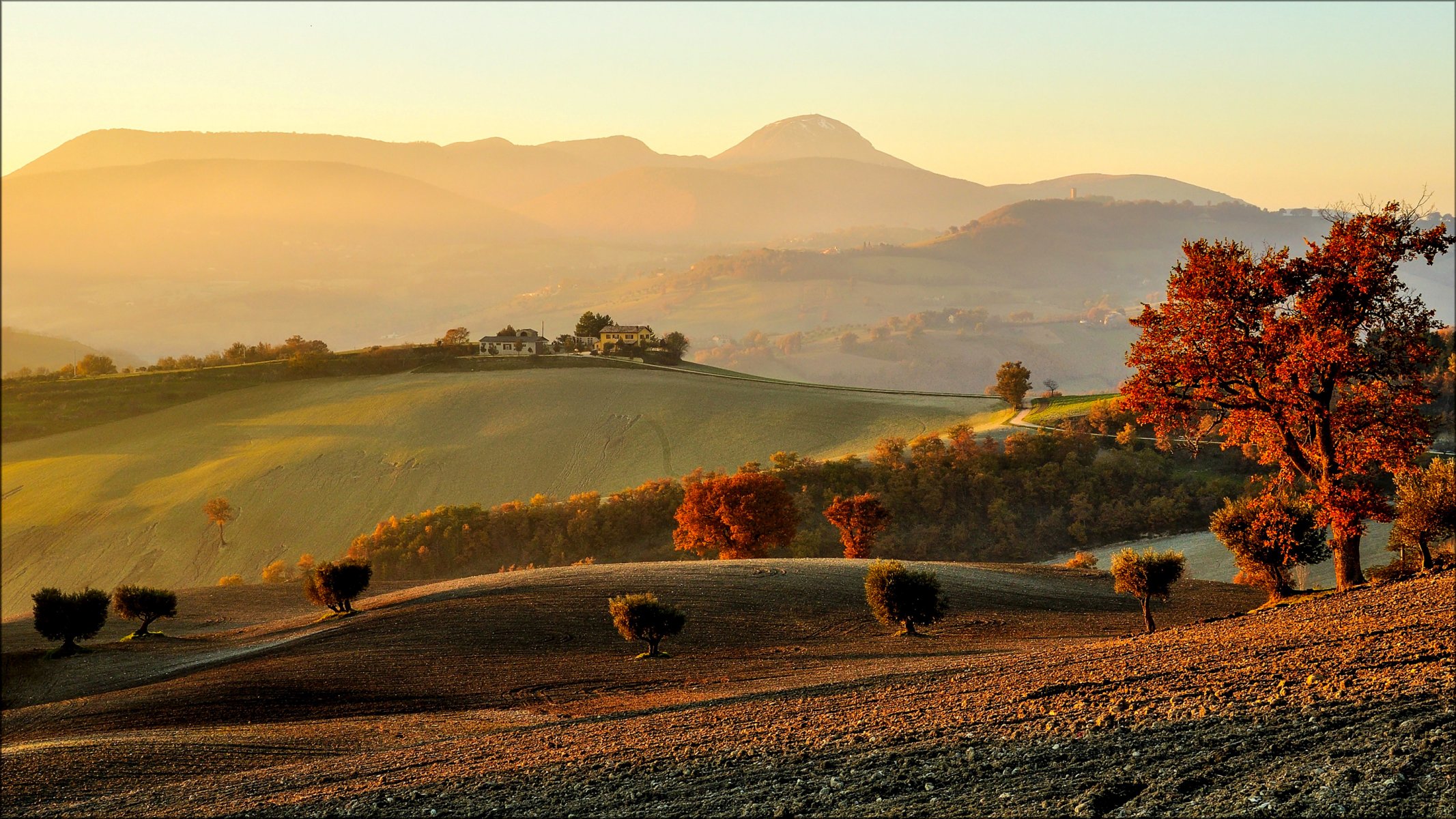 Morning dawn over the fields of Italy