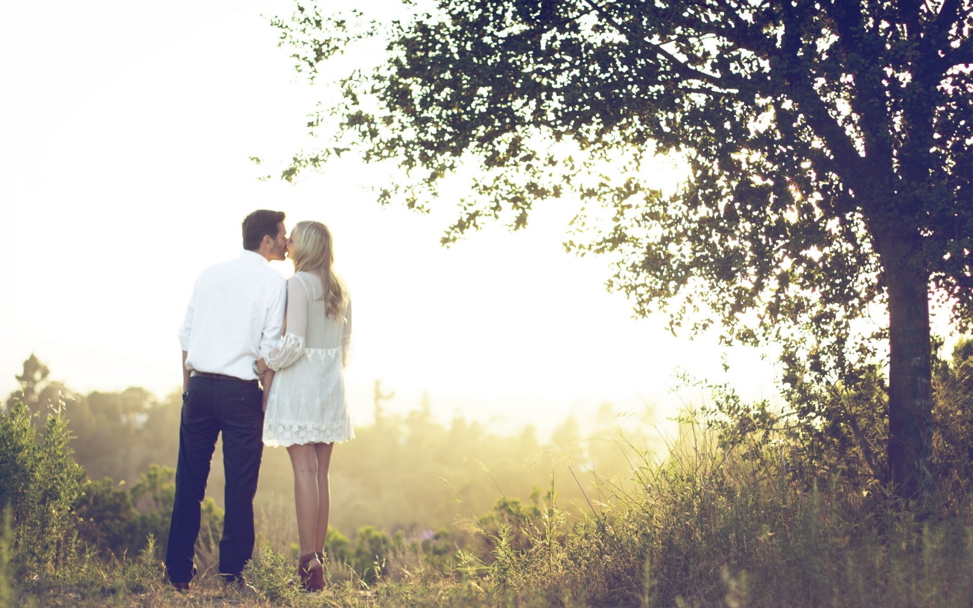 The mood is spring, beautiful blooming nature is walking a couple. the alley with blooming trees is a paradise for loversThe mood is spring, beautiful blooming nature is walking a couple. the alley with blooming trees is a paradise for lovers