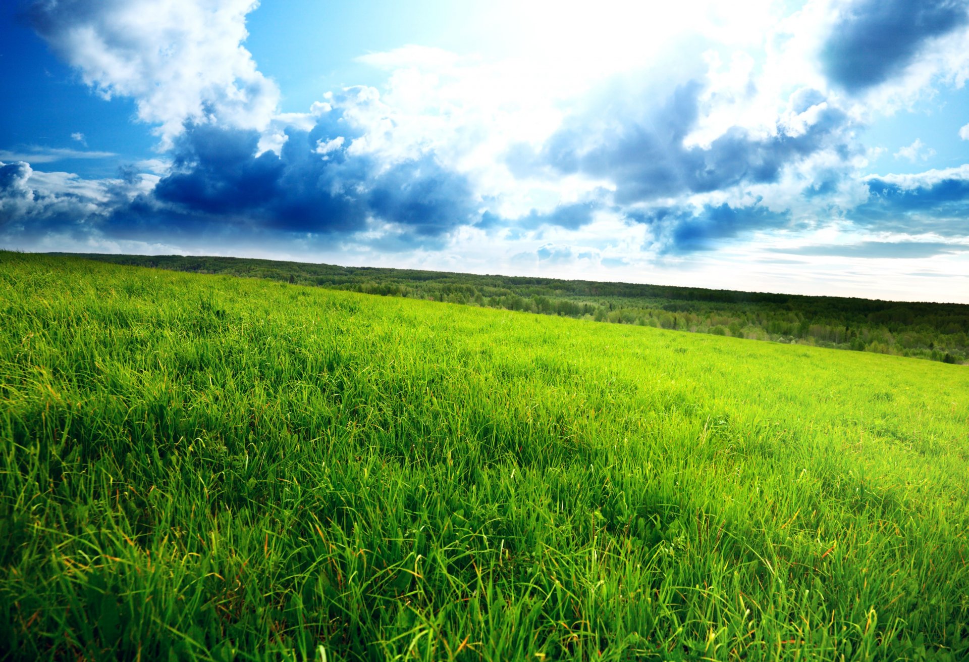 Endless green meadow with long grass